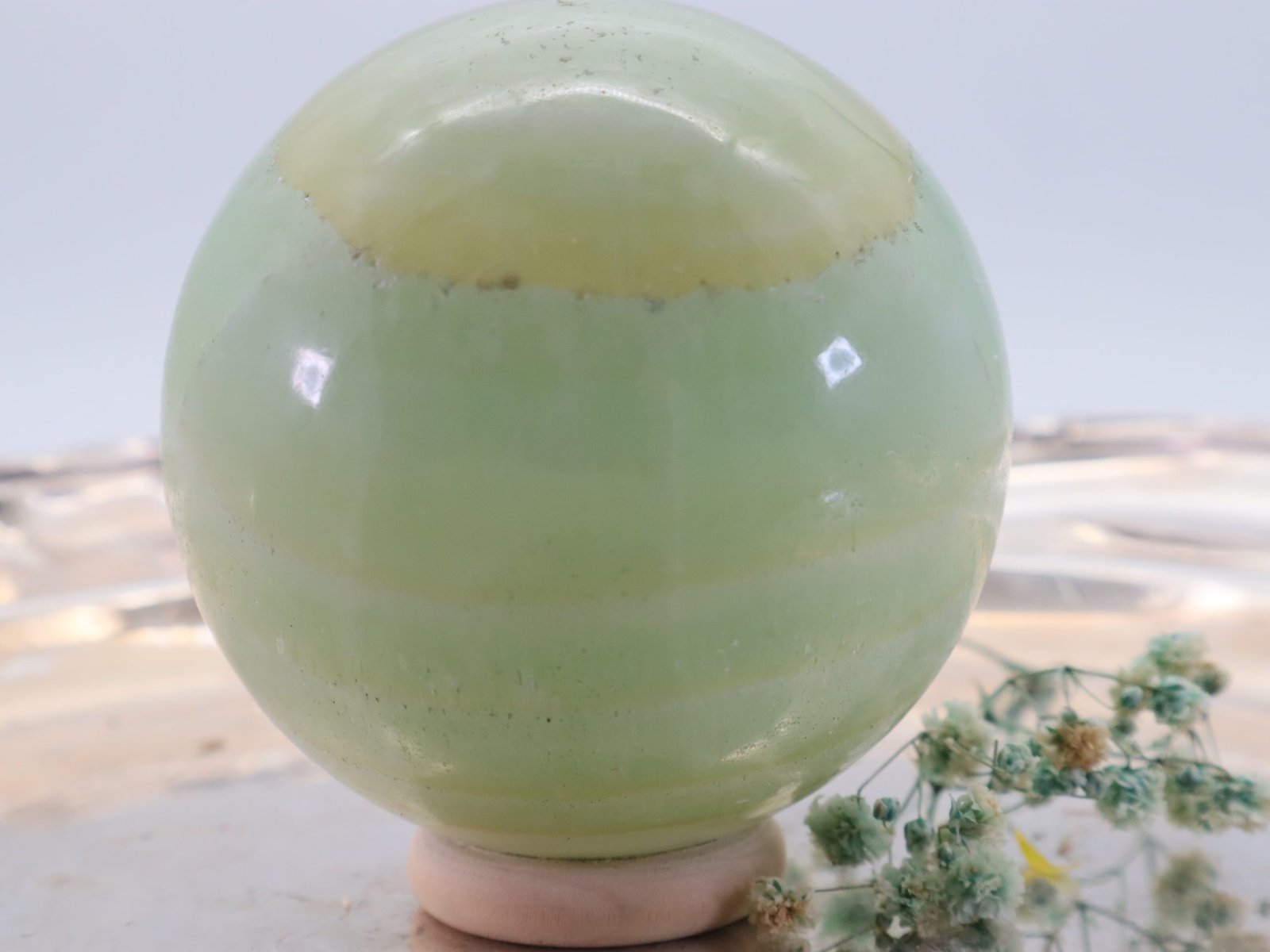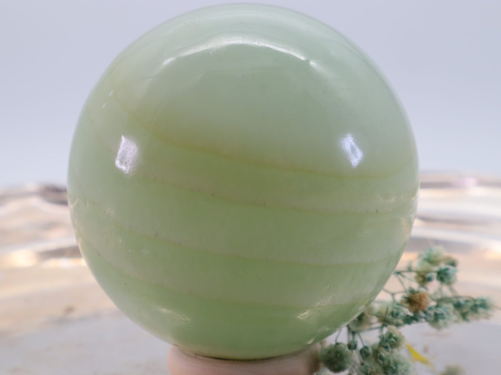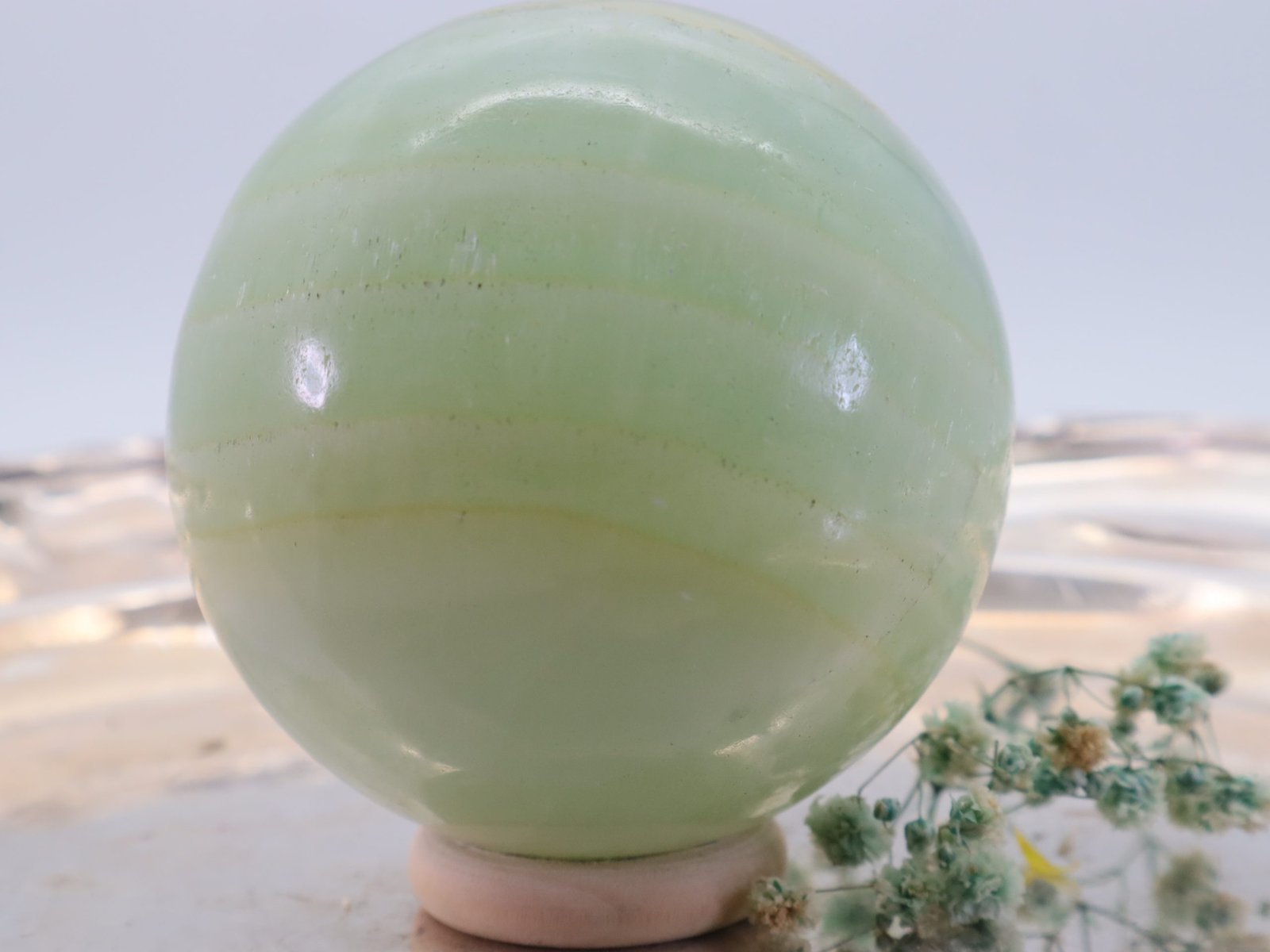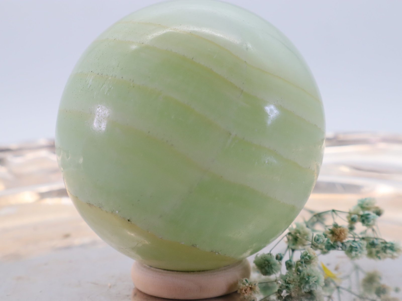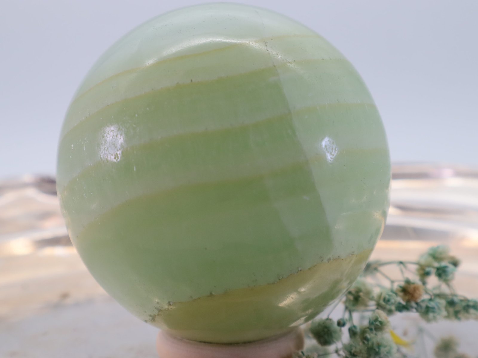 Grün gebänderte Calcit Edelsteinkugel 64 mm