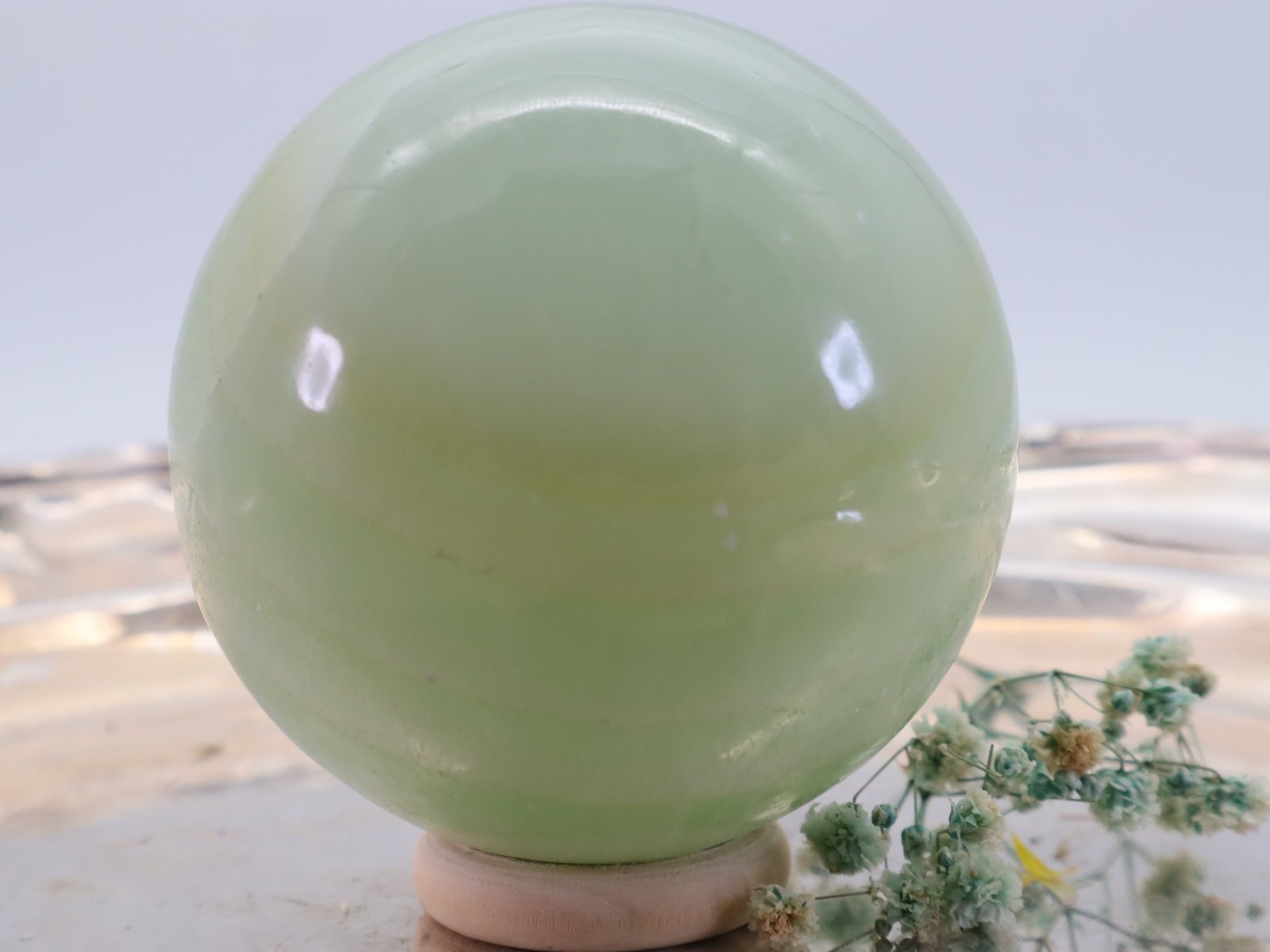 Insgesamt ist die grün gebänderte Calcit-Edelsteinkugel ein kraftvolles Werkzeug für Heilung, Transformation und spirituelles Wachstum.