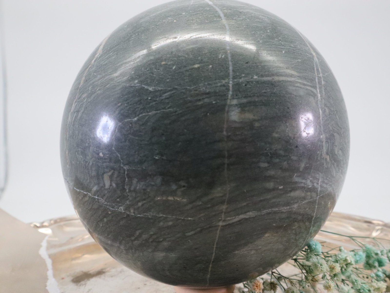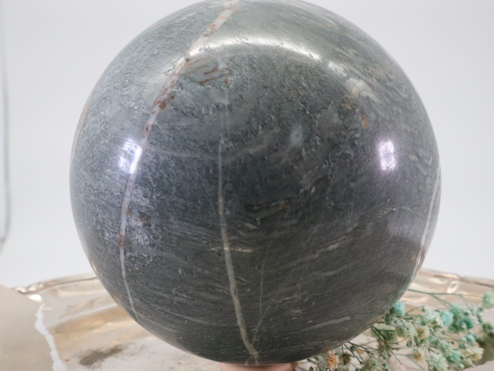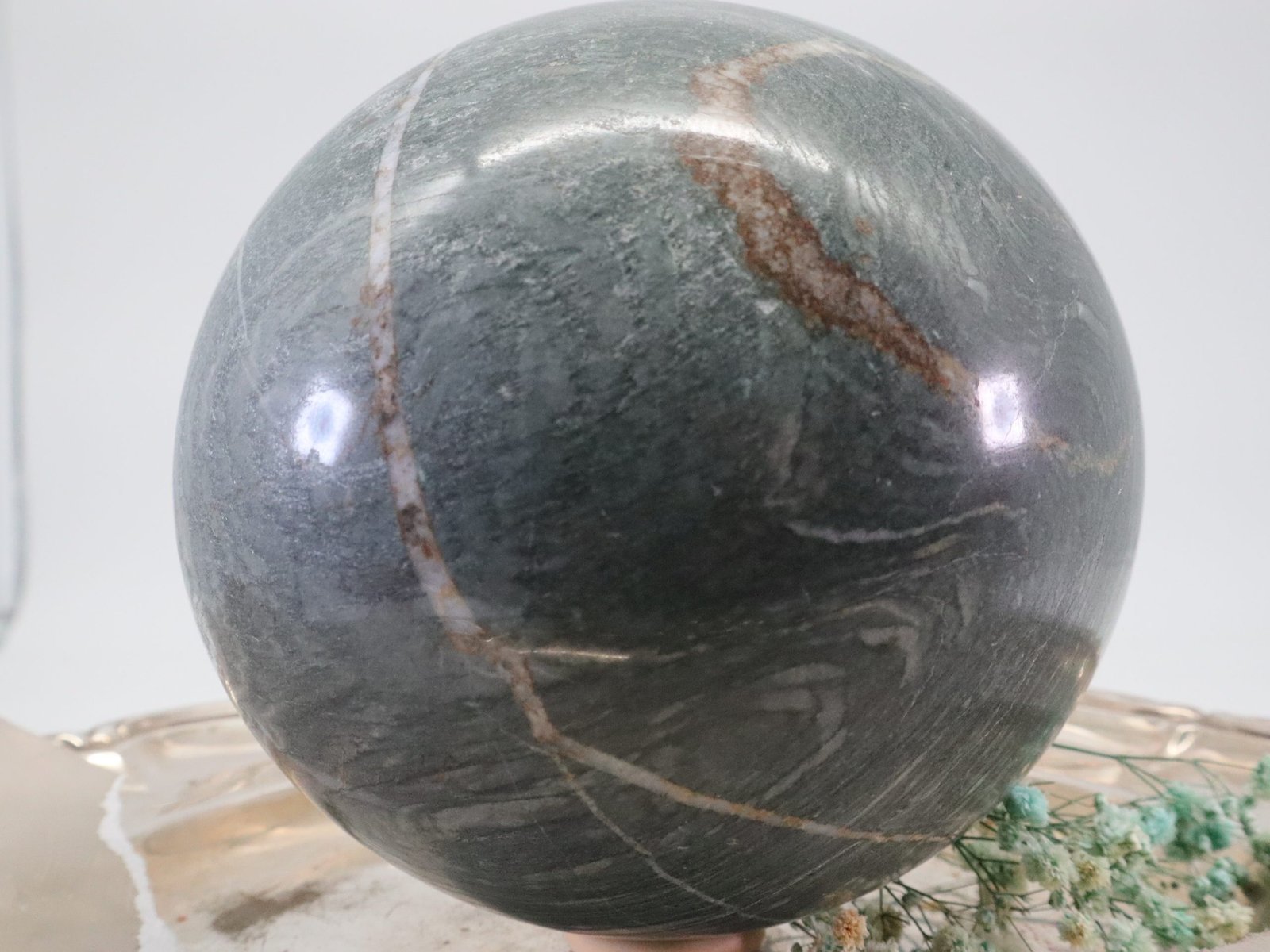 Zusammenfassend ist unsere große grüne Kalkstein Natursteinkugel aus der Kundlerklamm in Tirol, Deutschland, ein Juwel der Natur, das tiefgründige Emotionen hervorruft. Ihre Einzigartigkeit, ihre beruhigende grüne Farbe und ihre positiven Eigenschaften machen sie zu einem begehrten Schatz für Sammler, Heilpraktiker und spirituelle Suchende gleichermaßen. Egal, ob sie als dekoratives Element in einem stilvollen Zuhause oder als Unterstützung für esoterische Praktiken verwendet wird, diese grünen Naturstein-Edelsteinkugeln werden zweifellos ihre Magie entfalten und die Herzen der Menschen auf besondere Weise berühren.