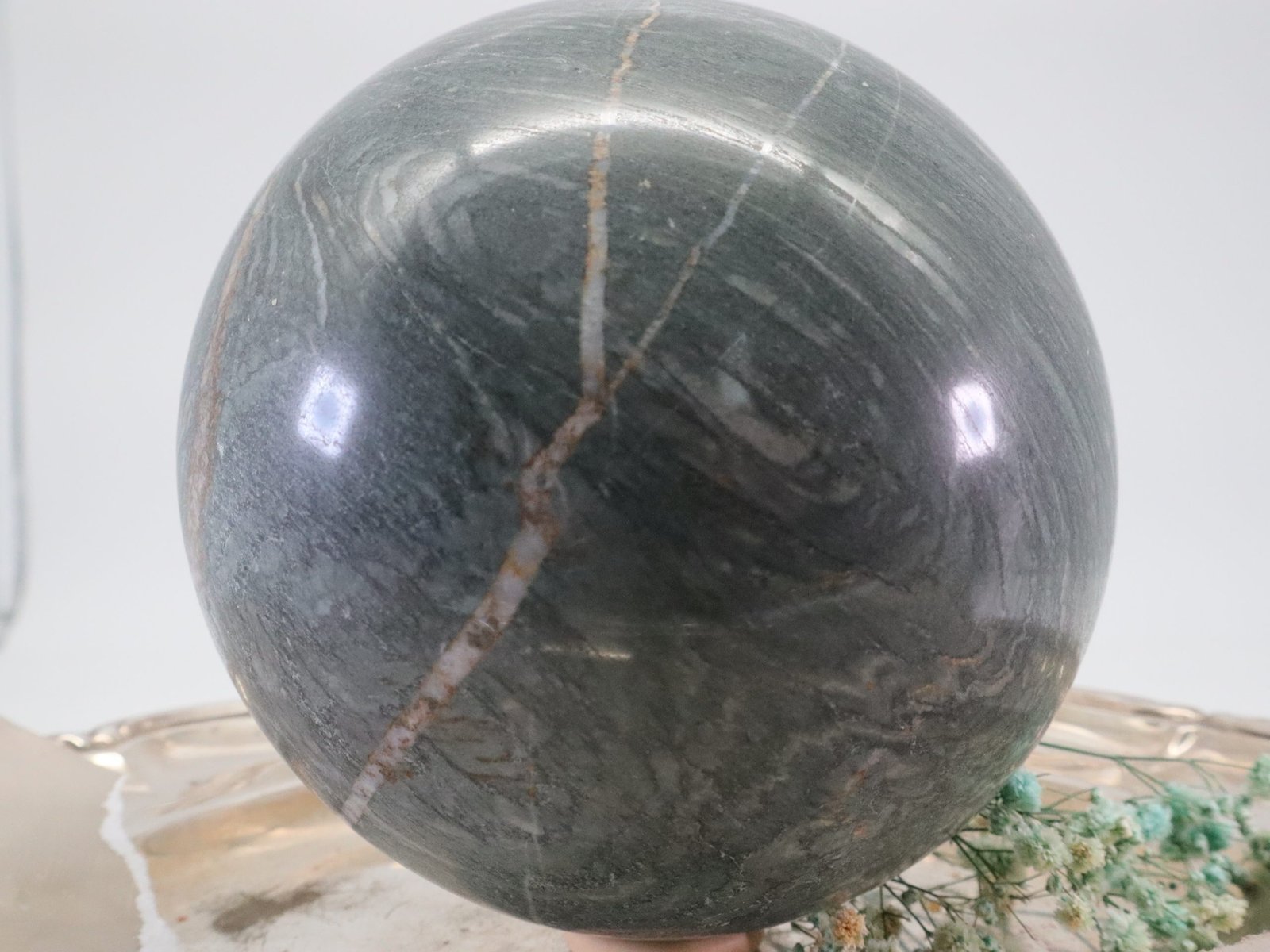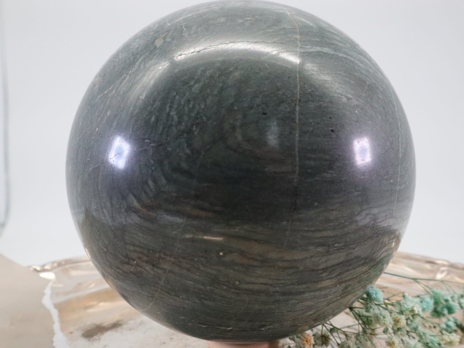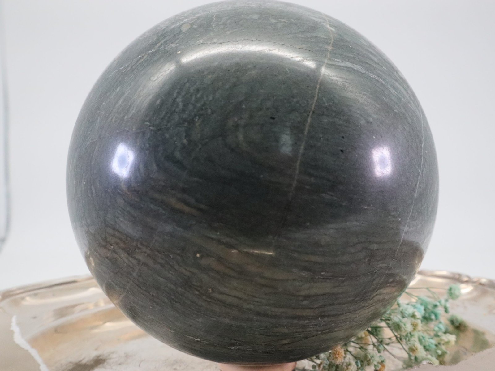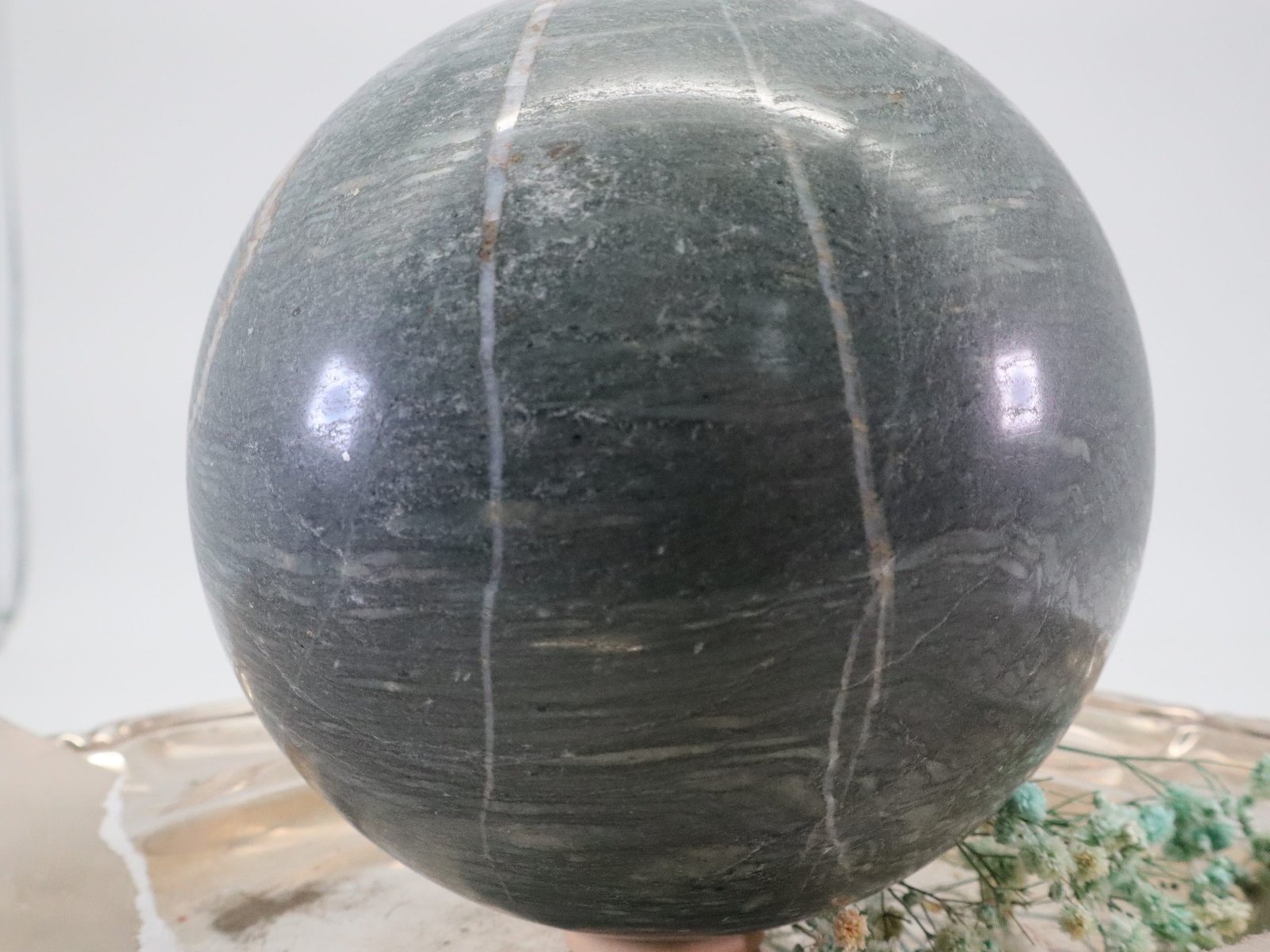 Zusammenfassend ist unsere große grüne Kalkstein Natursteinkugel aus der Kundlerklamm in Tirol, Deutschland, ein Juwel der Natur, das tiefgründige Emotionen hervorruft. Ihre Einzigartigkeit, ihre beruhigende grüne Farbe und ihre positiven Eigenschaften machen sie zu einem begehrten Schatz für Sammler, Heilpraktiker und spirituelle Suchende gleichermaßen. Egal, ob sie als dekoratives Element in einem stilvollen Zuhause oder als Unterstützung für esoterische Praktiken verwendet wird, diese grünen Naturstein-Edelsteinkugeln werden zweifellos ihre Magie entfalten und die Herzen der Menschen auf besondere Weise berühren.