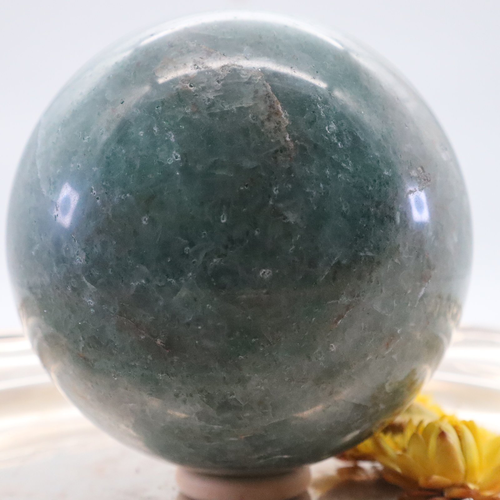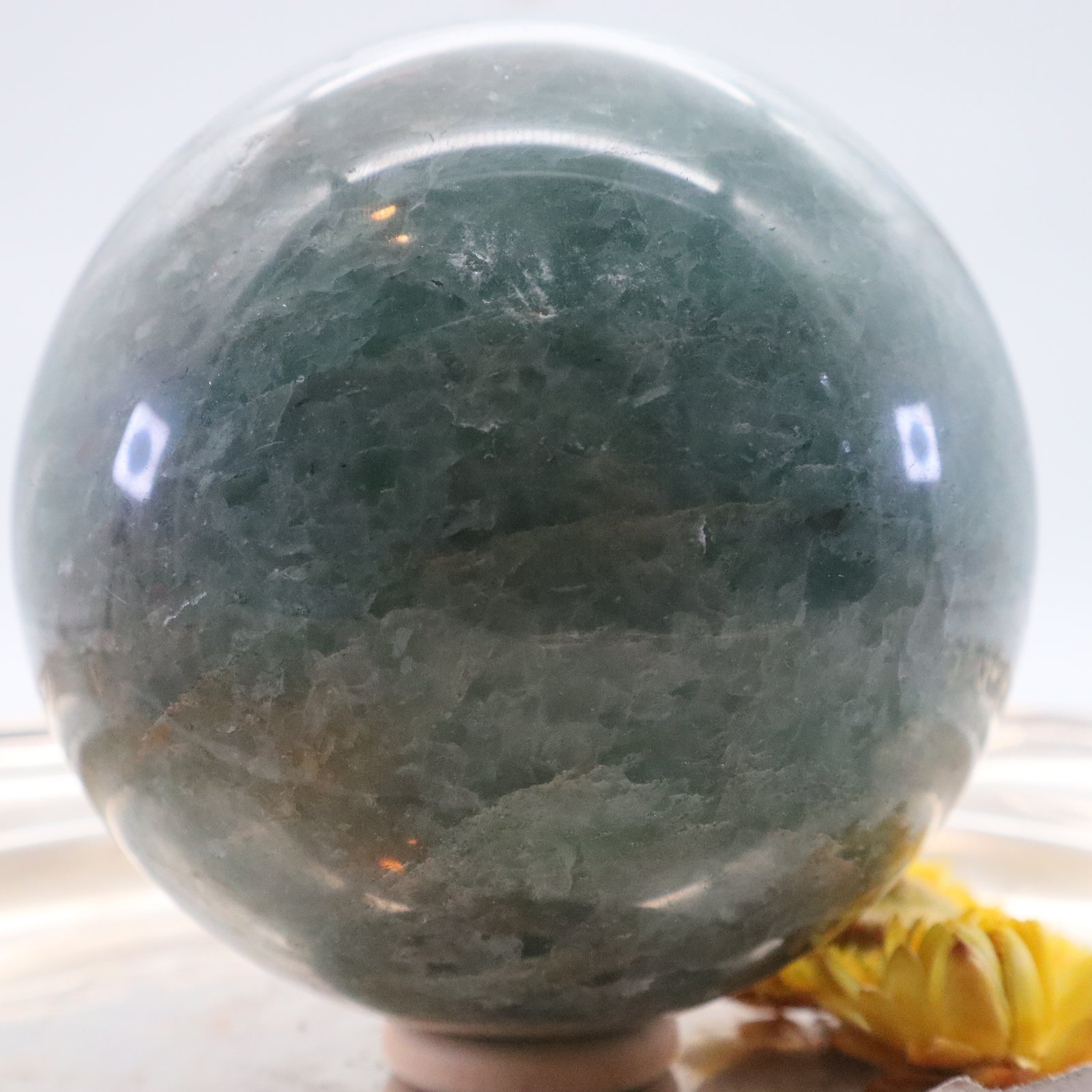 Der Anblick dieser grünen Quarz-Edelsteinkugel ruft unweigerlich eine tiefgreifende emotionale Reaktion hervor. Die beruhigenden Nuancen des Grüns erinnern an die üppigen Wälder und die erfrischende Pracht der Natur. Sie wecken Gefühle von Ruhe, Ausgeglichenheit und Harmonie. Die Kugel strahlt eine Aura von Frieden und Erneuerung aus, die schwer in Worte zu fassen ist.