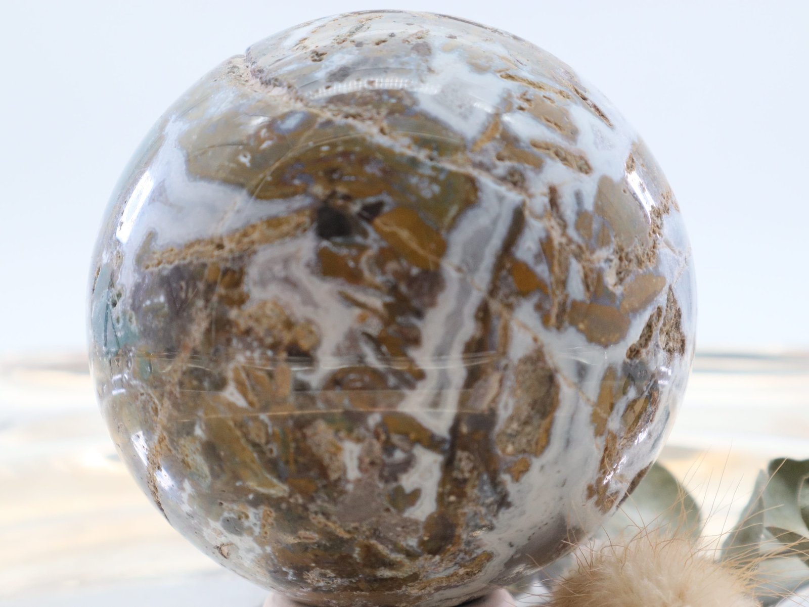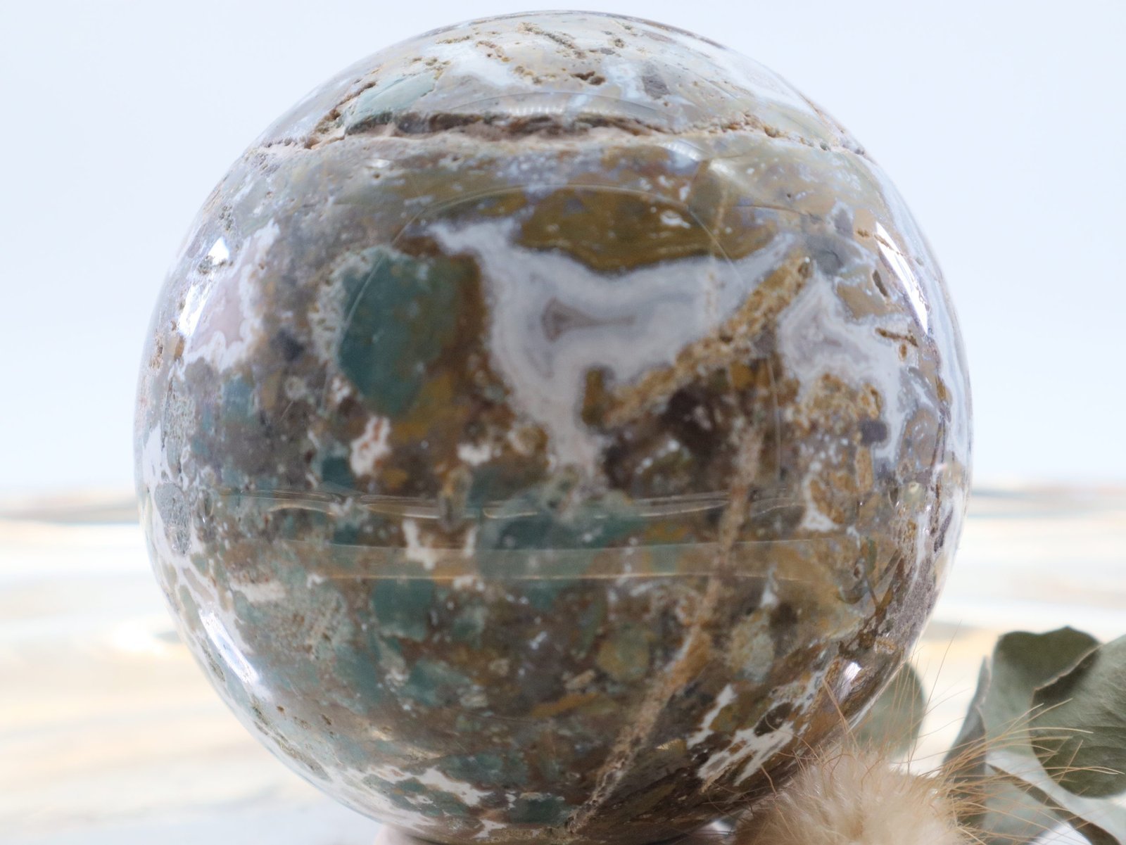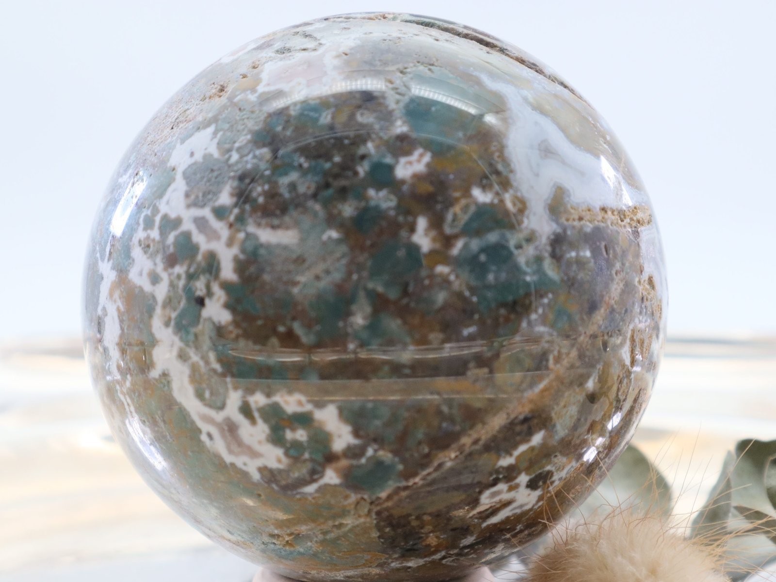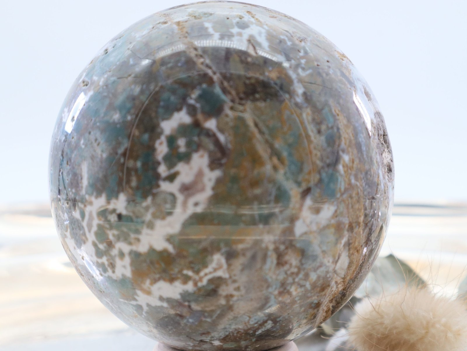 Große Ozean Jaspis Edelsteinkugel mit wunderschöner Struktur und Farbspiel