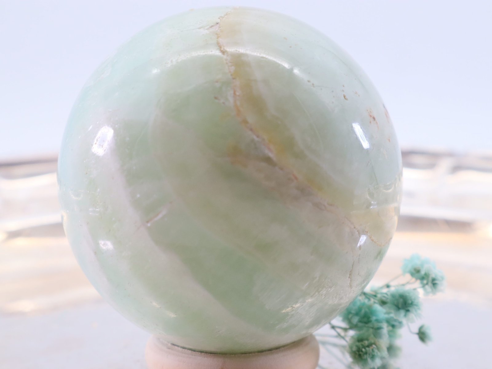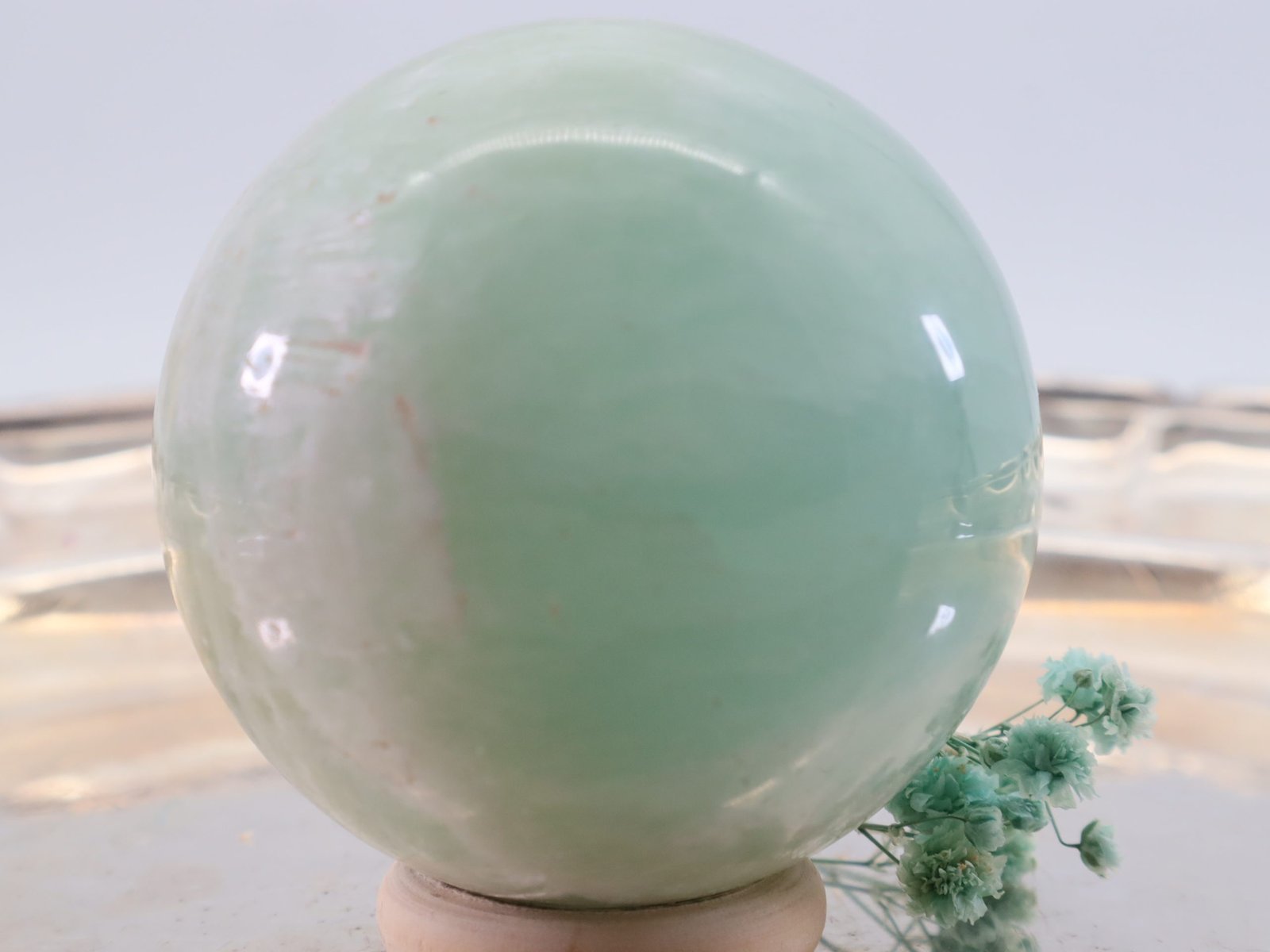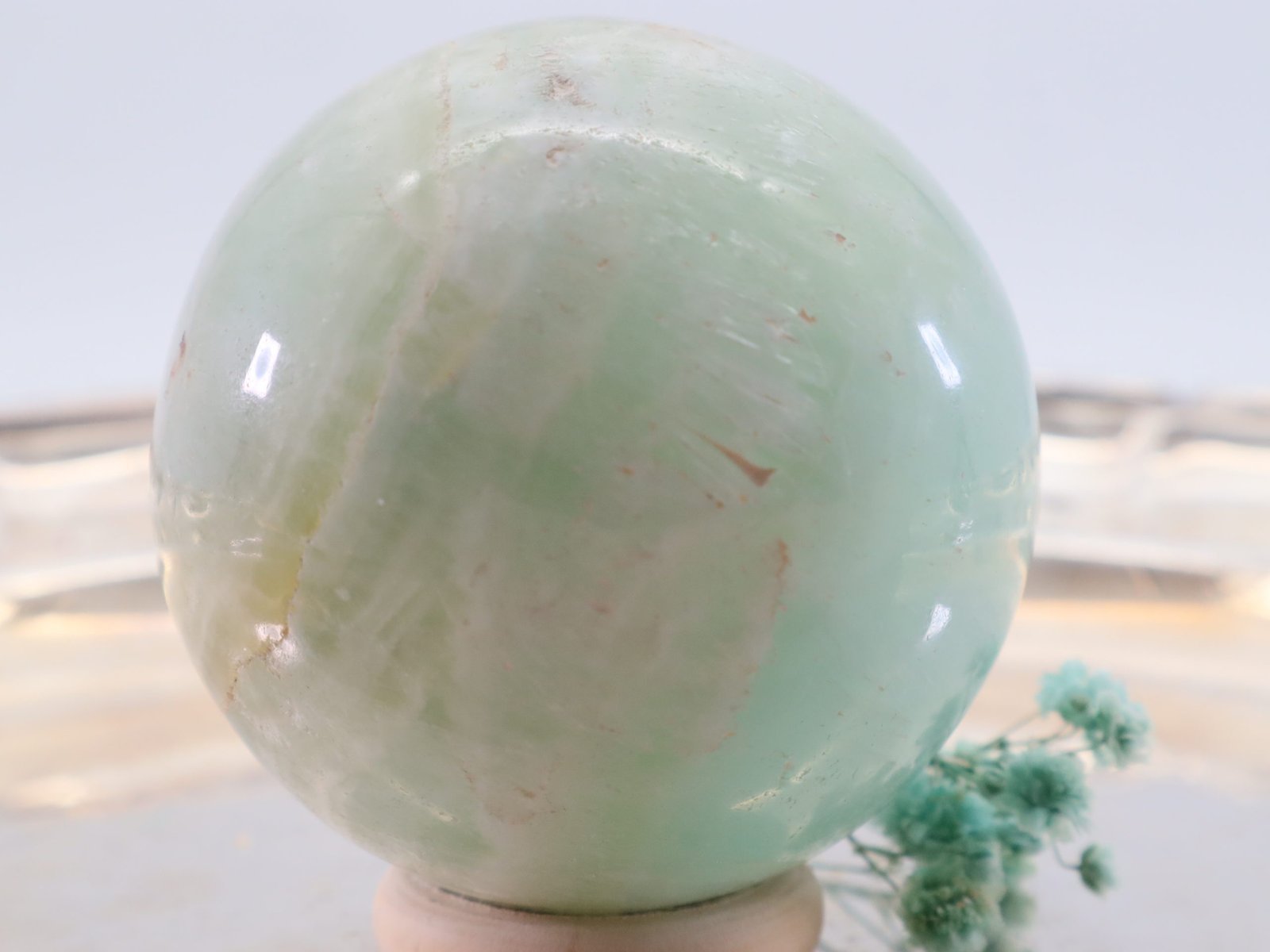 Die Entstehung des Pistazien-Calcits erfolgt über lange Zeiträume hinweg durch geologische Prozesse. Er entsteht hauptsächlich in Kalksteininformationen und kann Spuren von Eisen und Mangan enthalten, die ihm seine charakteristische grüne Farbe verleihen. Die Kugelform wird durch Schleifen und Polieren erreicht, wodurch der Stein seine glatte und glänzende Oberfläche erhält.