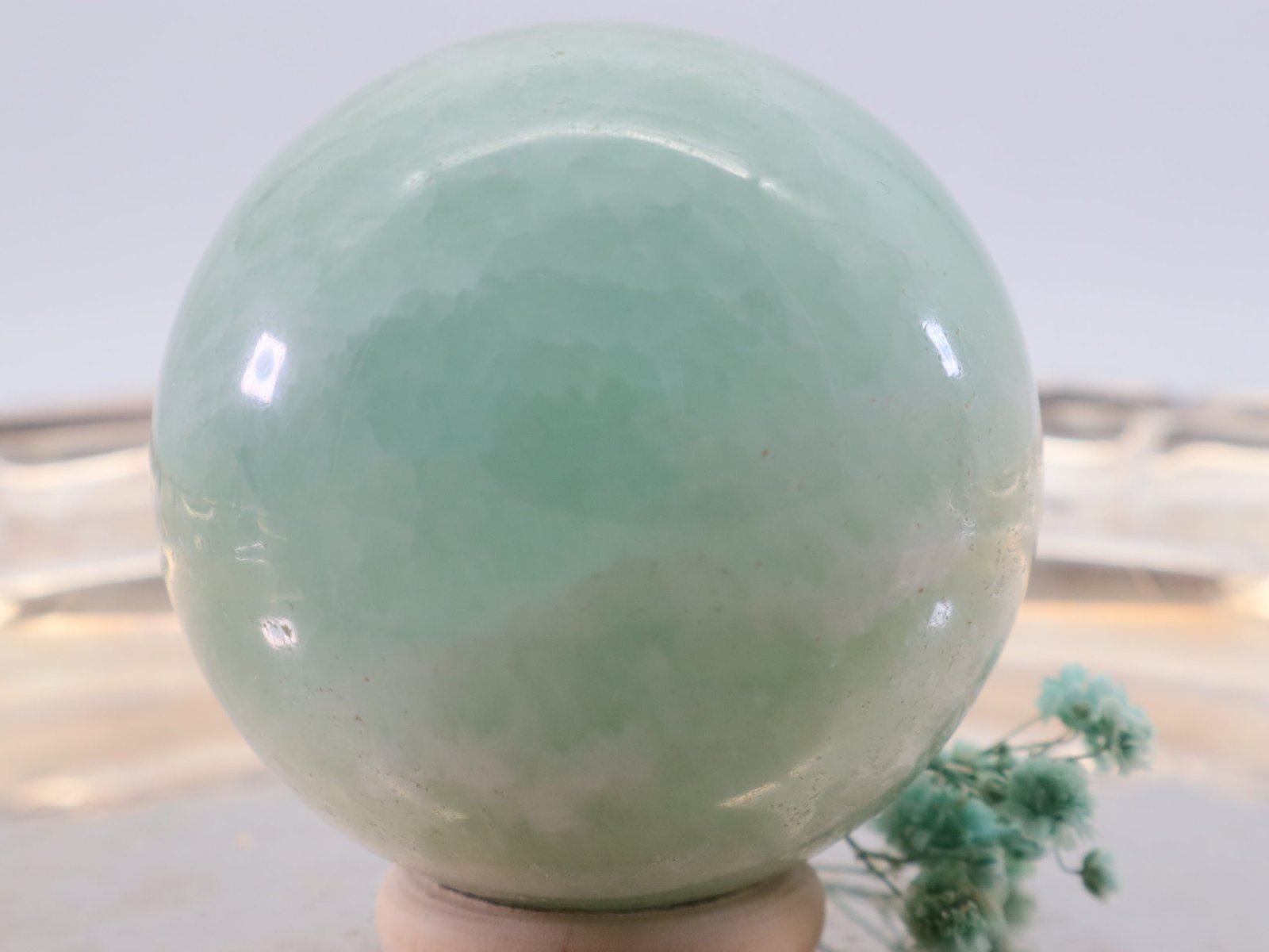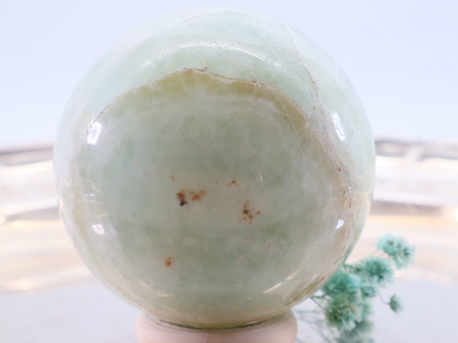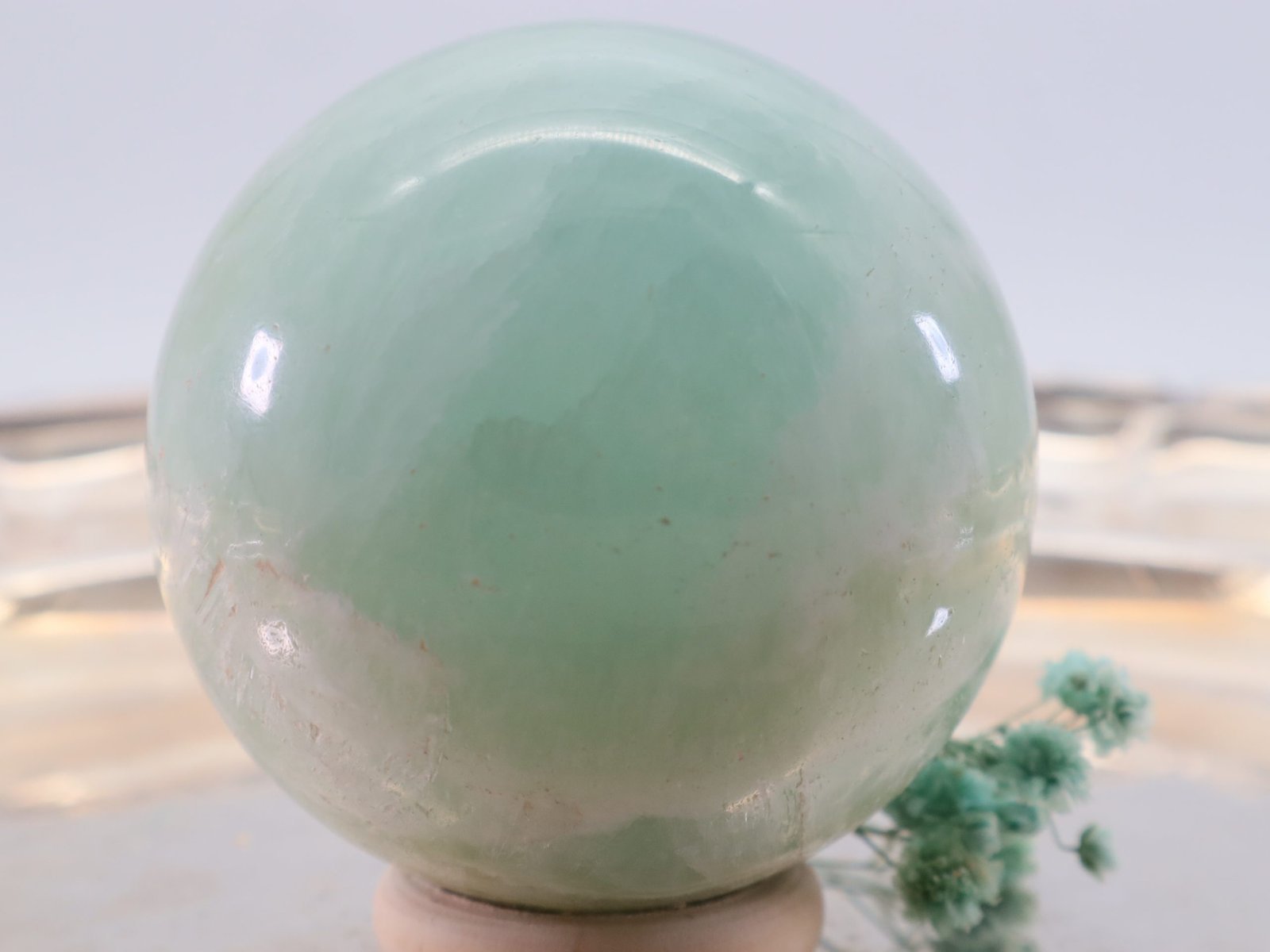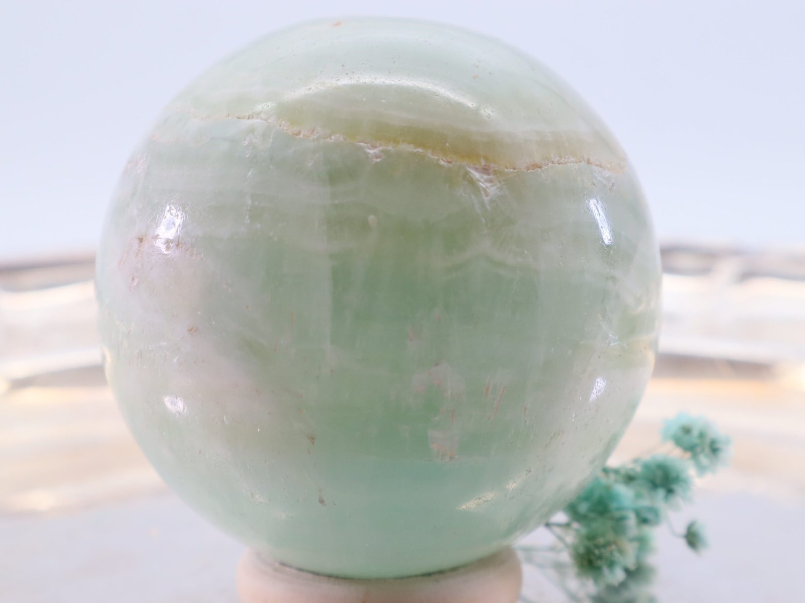 Die Entstehung des Pistazien-Calcits erfolgt über lange Zeiträume hinweg durch geologische Prozesse. Er entsteht hauptsächlich in Kalksteininformationen und kann Spuren von Eisen und Mangan enthalten, die ihm seine charakteristische grüne Farbe verleihen. Die Kugelform wird durch Schleifen und Polieren erreicht, wodurch der Stein seine glatte und glänzende Oberfläche erhält.