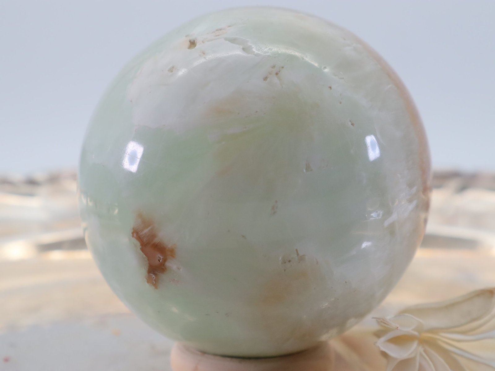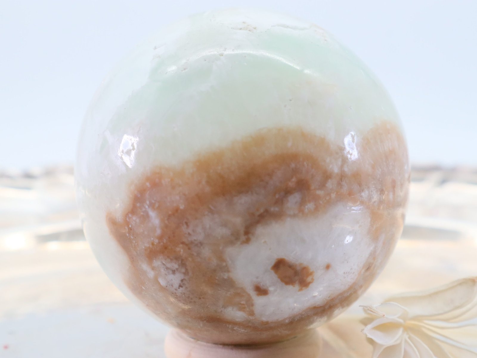 Die Entstehung des Pistazien-Calcits erfolgt über lange Zeiträume hinweg durch geologische Prozesse. Er entsteht hauptsächlich in Kalksteininformationen und kann Spuren von Eisen und Mangan enthalten, die ihm seine charakteristische grüne Farbe verleihen. Die Kugelform wird durch Schleifen und Polieren erreicht, wodurch der Stein seine glatte und glänzende Oberfläche erhält.