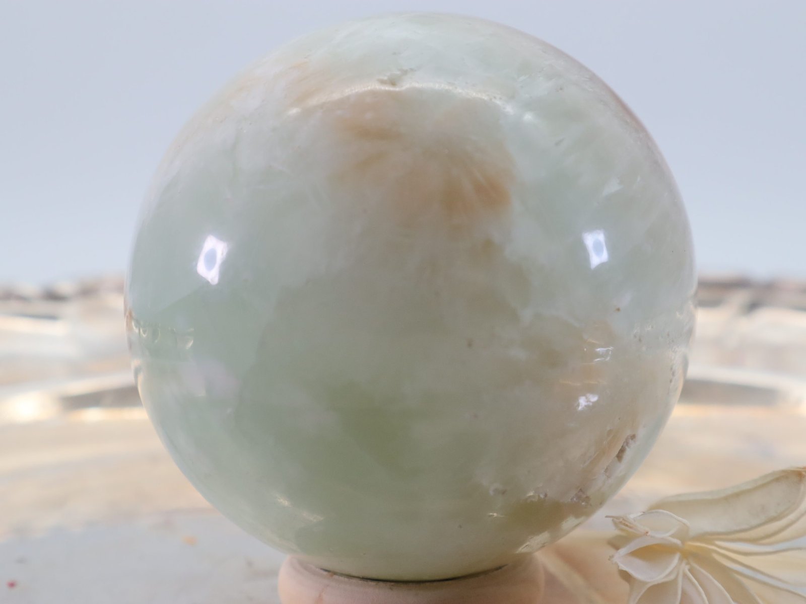 Große Pistazien Calcit Edelsteinkugel, 61 mm