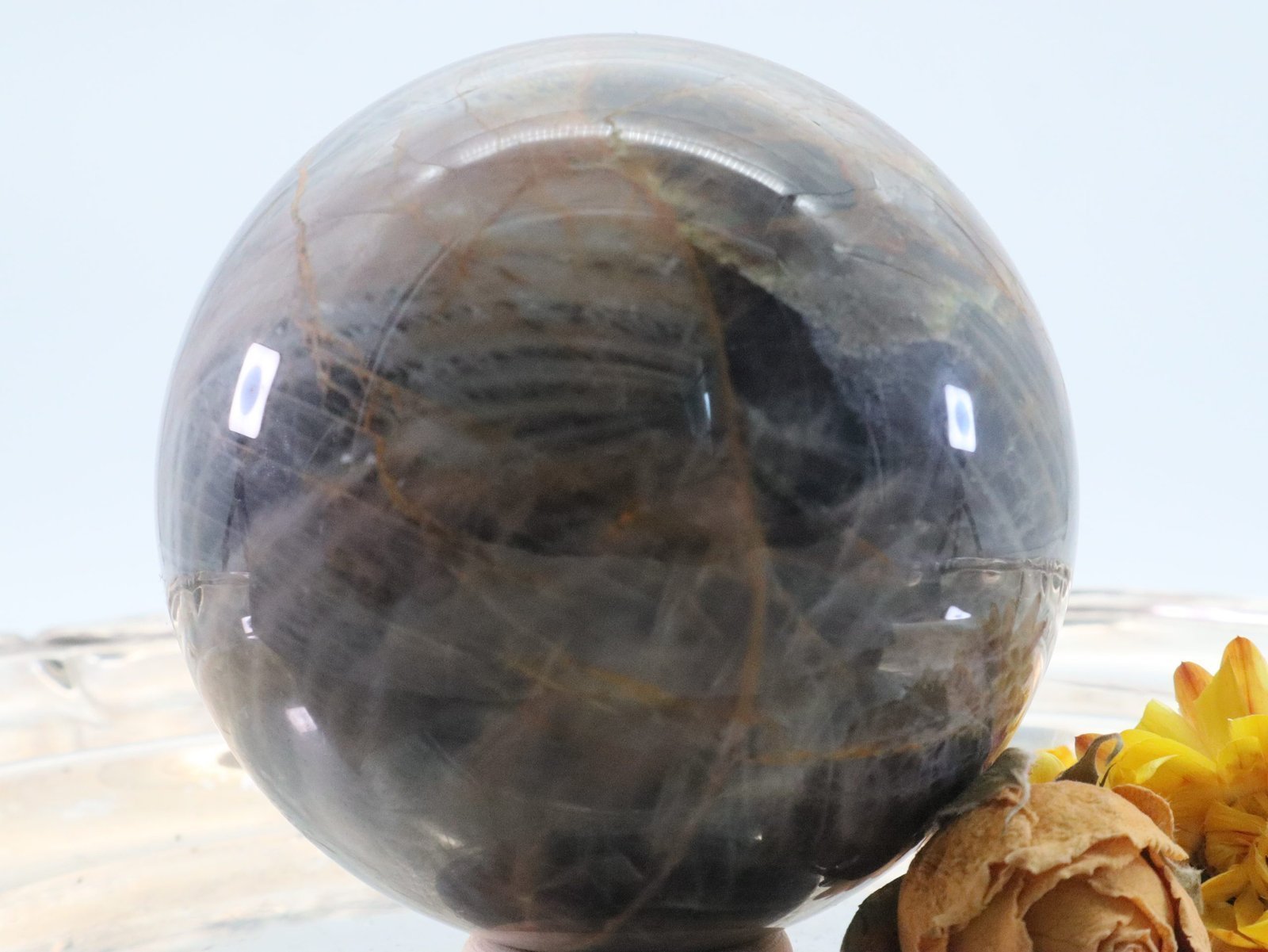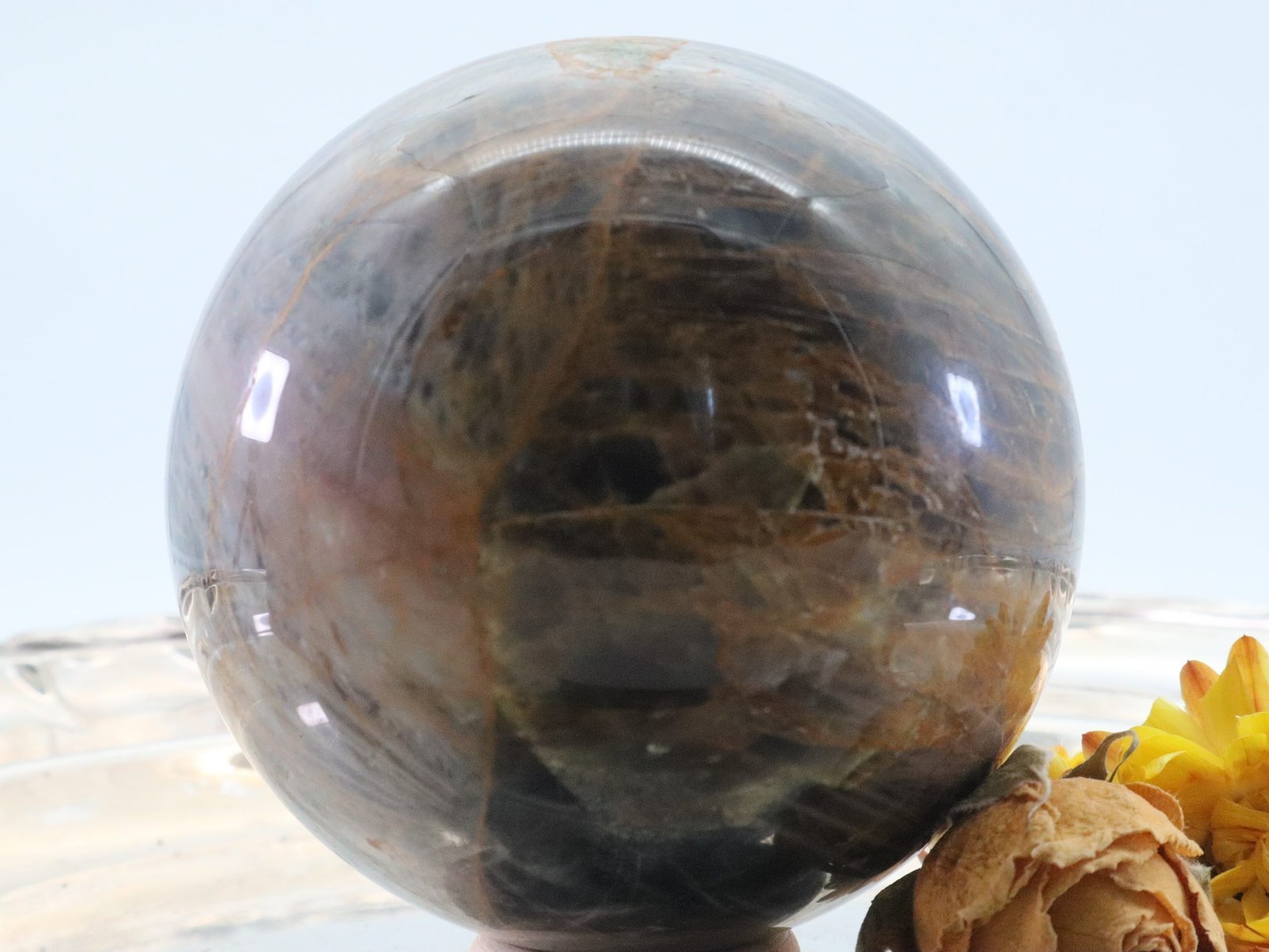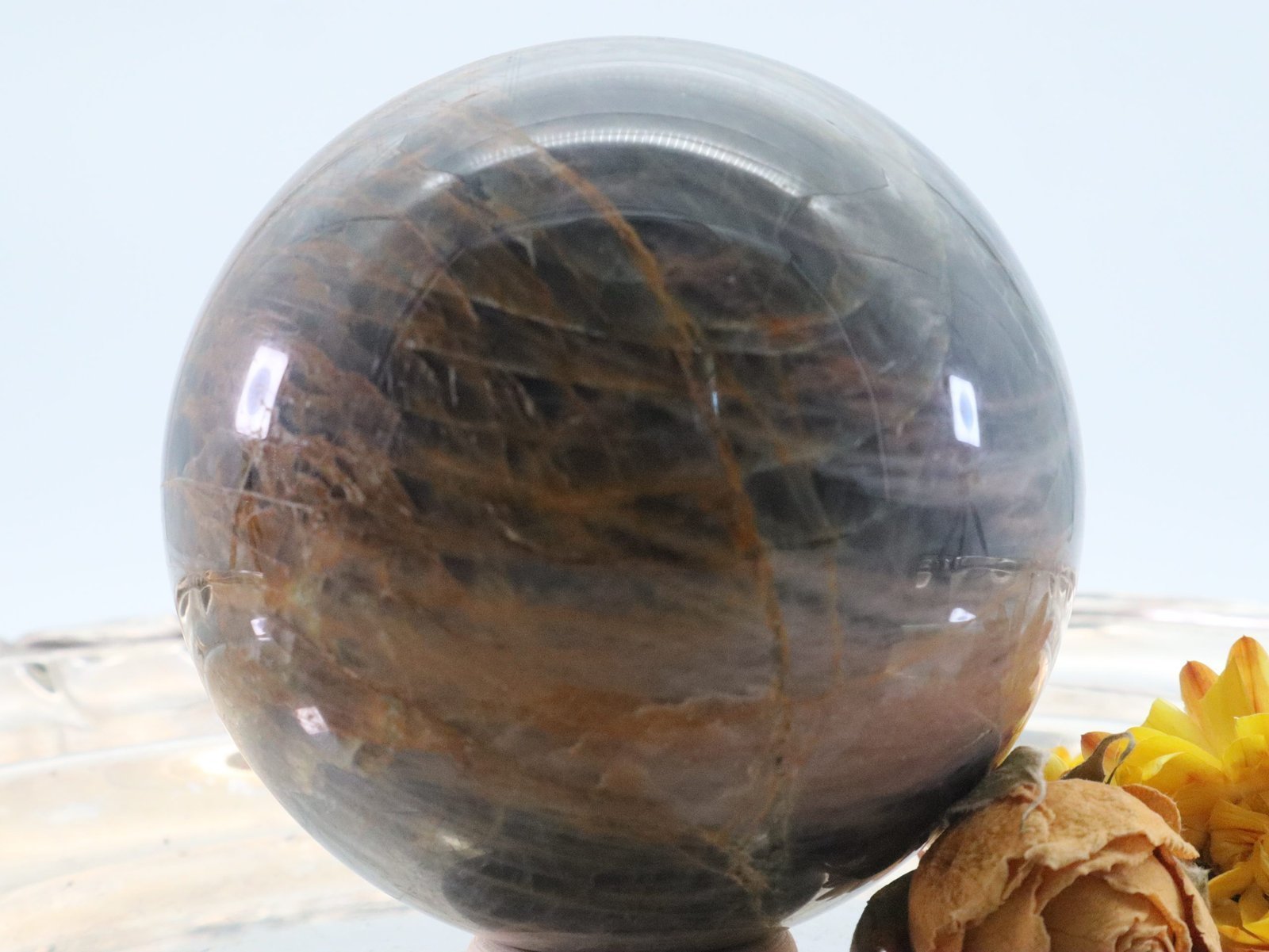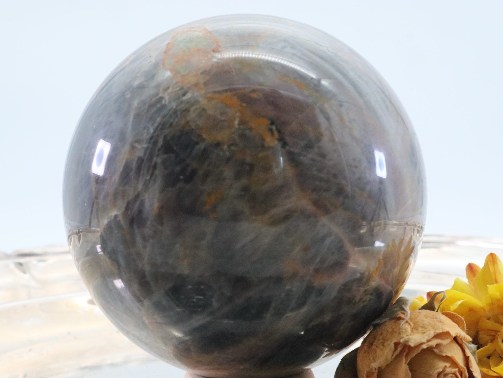 Große Schwarze Mondstein Edelsteinkugel mit wunderbarem Farbspiel