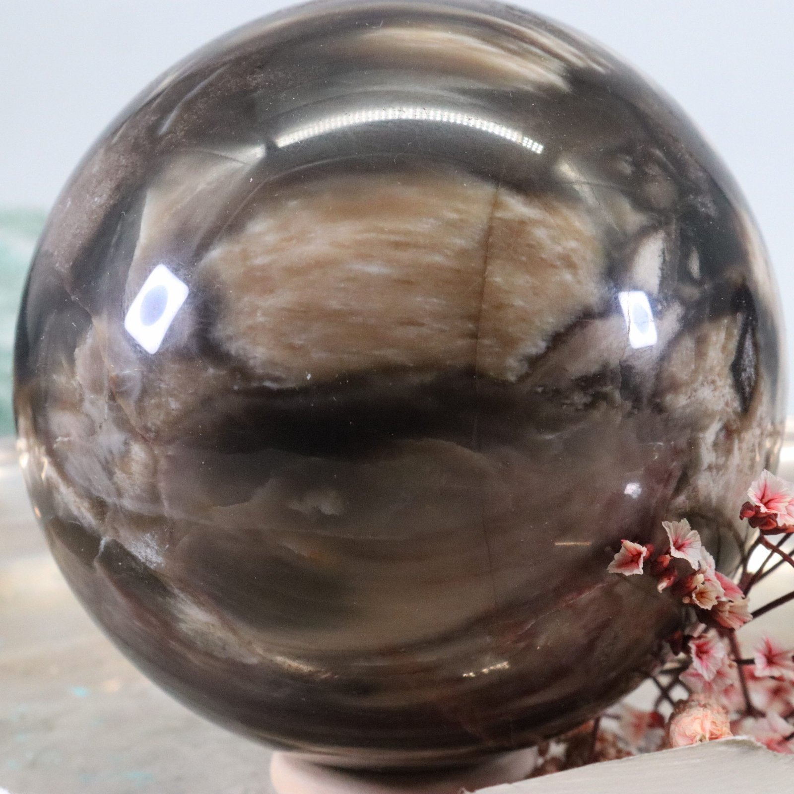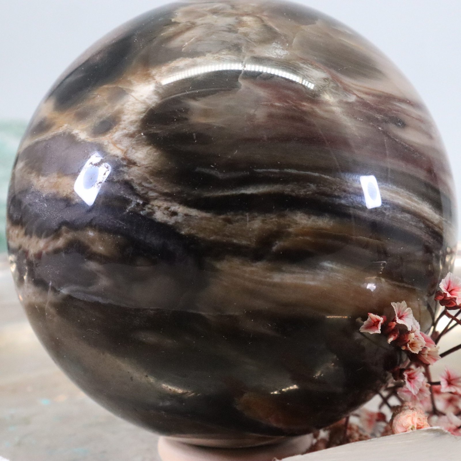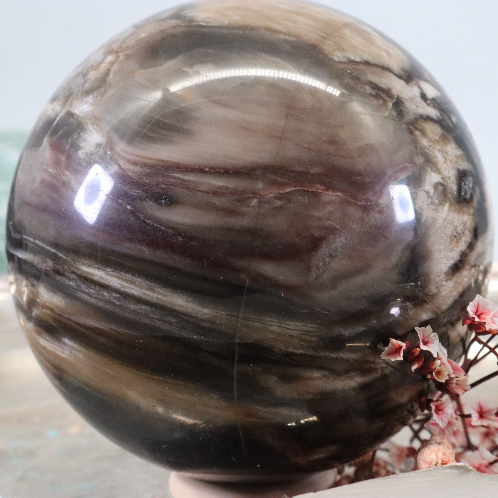 Edelsteinkugel aus versteinertes Holz auch Kieselholz genannt mit sehr guter Maserung aus Deutschland.