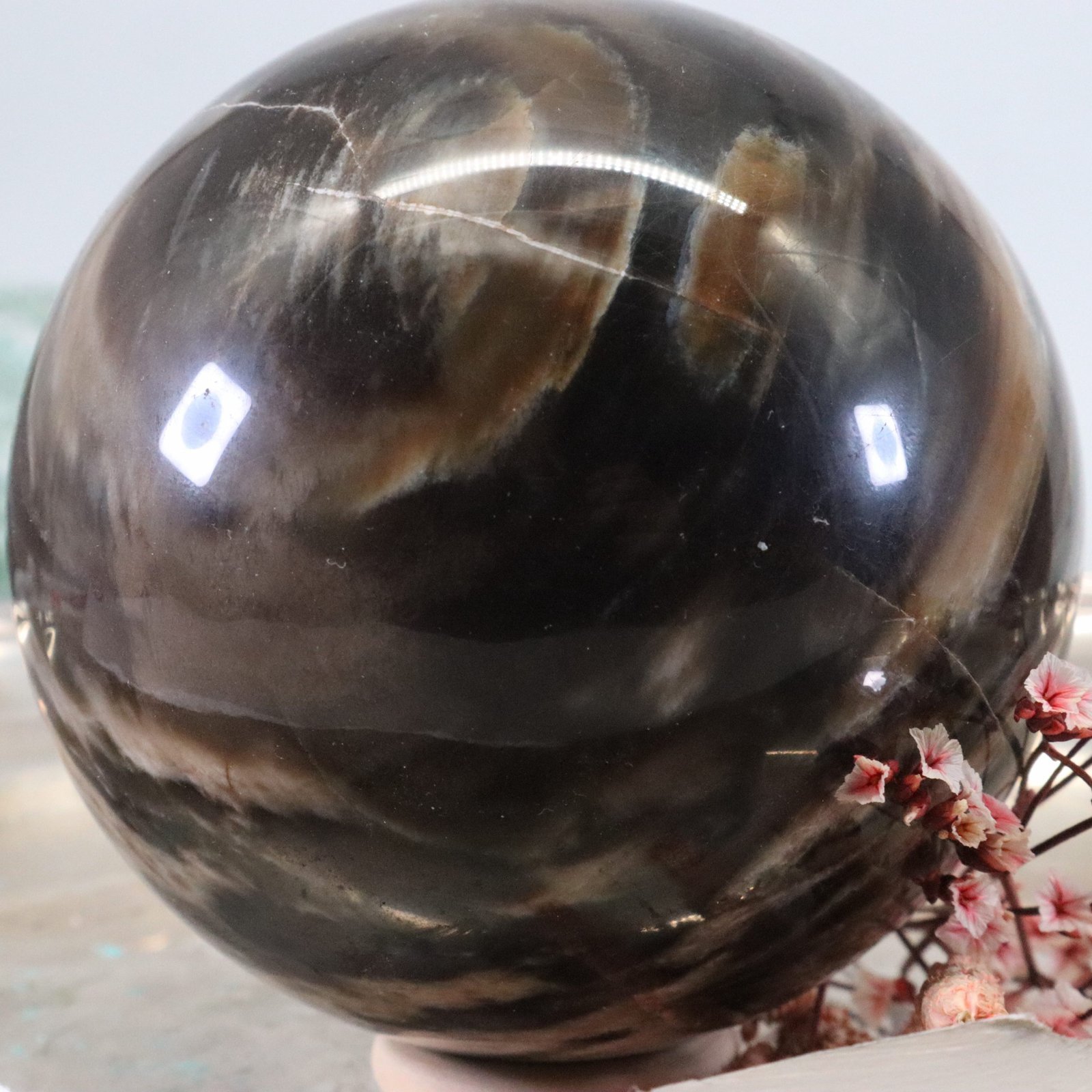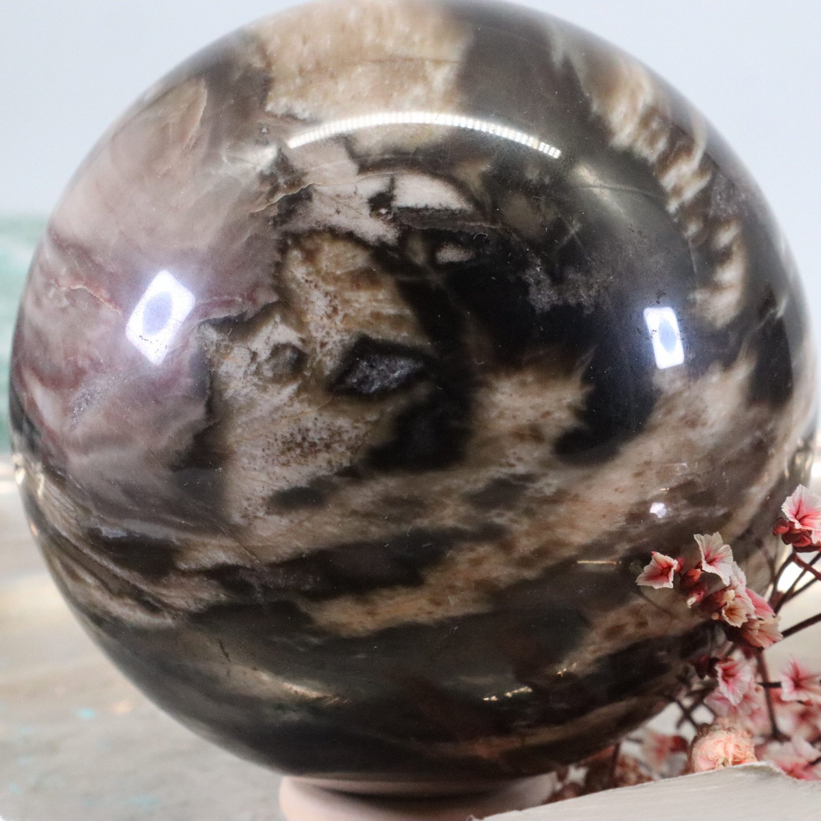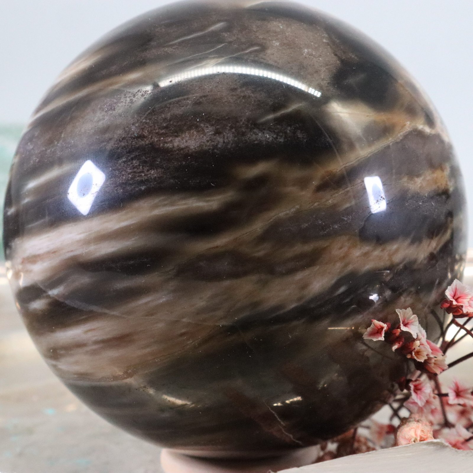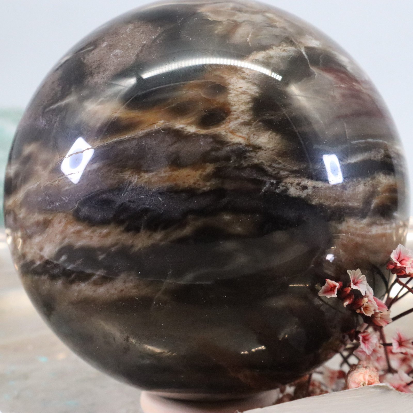 Edelsteinkugel aus versteinertes Holz auch Kieselholz genannt mit sehr guter Maserung aus Deutschland.