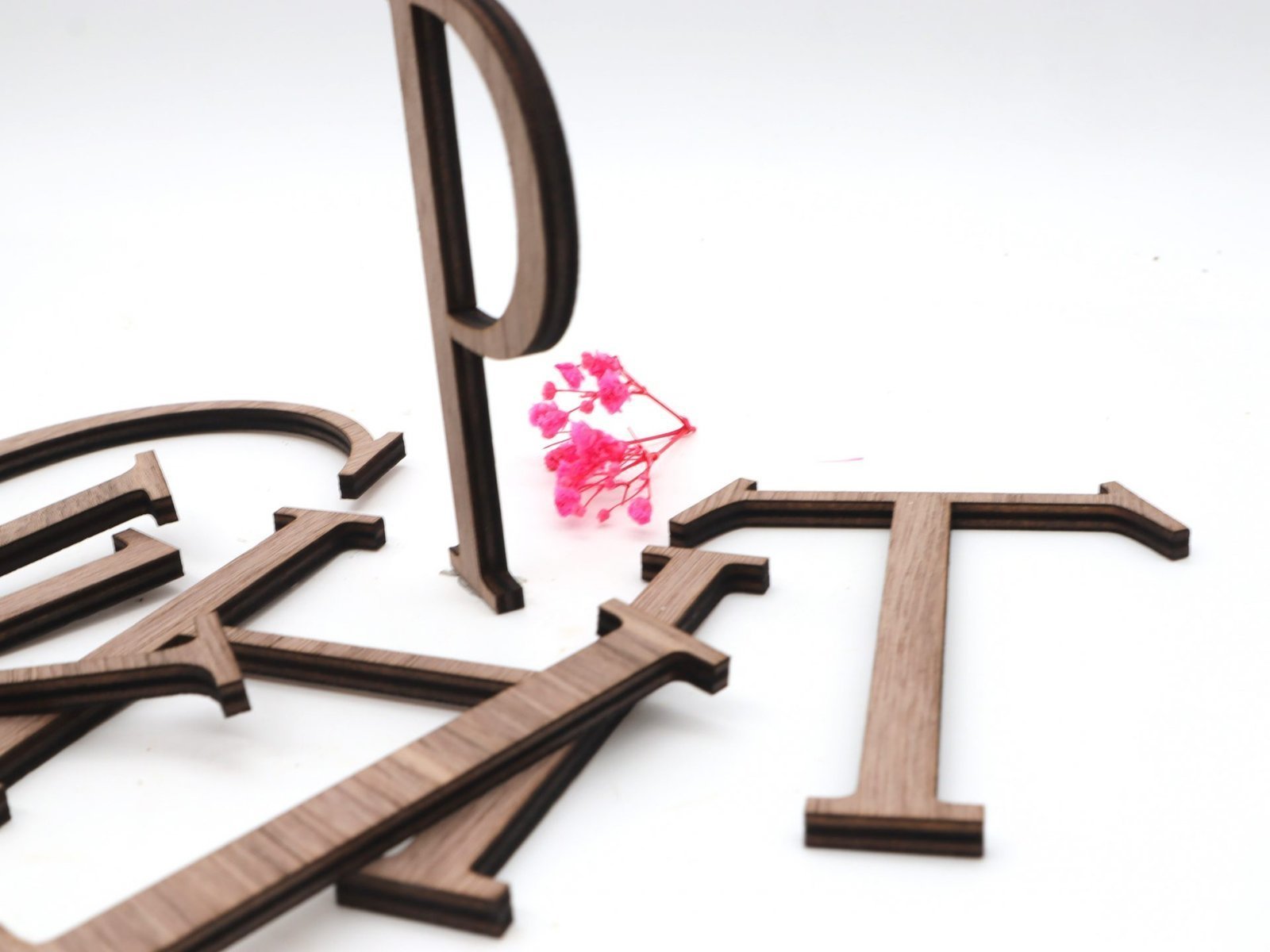 Buchstaben aus Nussbaum- oder Ahorn Sperrholz