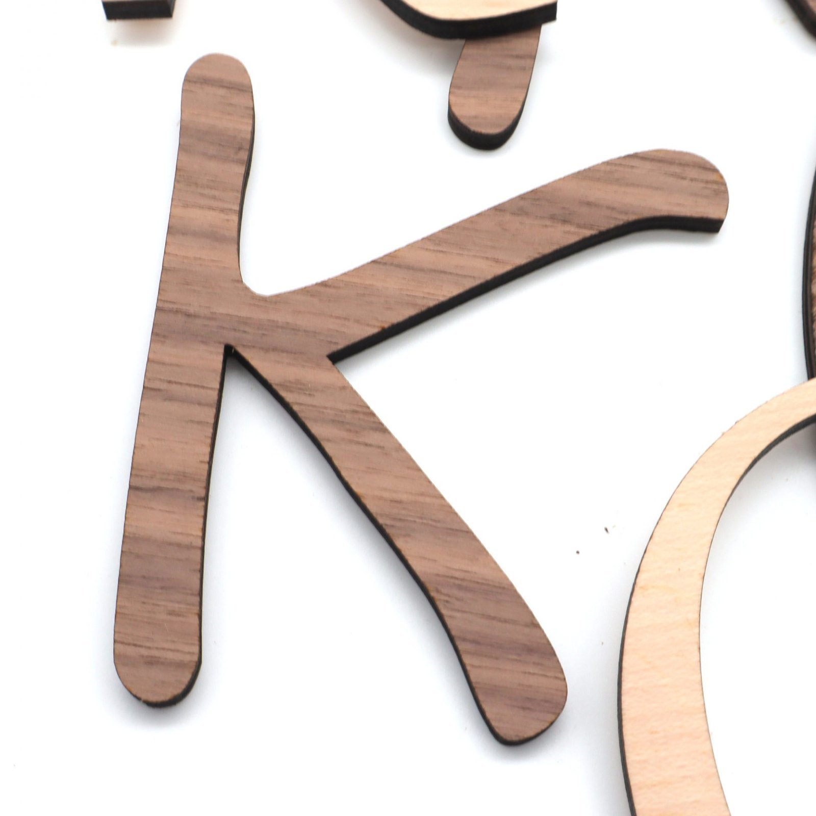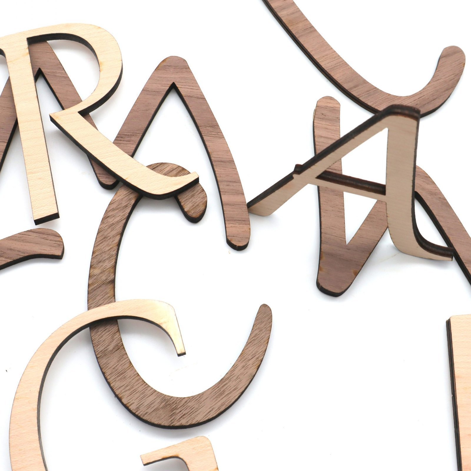 Buchstaben aus Nussbaum- oder Ahorn Sperrholz