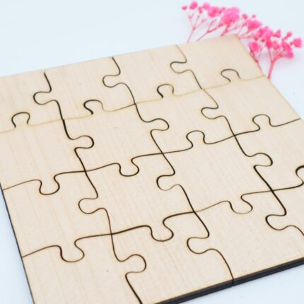 Holzpuzzle, unbehandeltes blanko Puzzle zum selbst bemalen, rohe Puzzle Teile, kreativ gestalten, pädagogisch wertvoll, 16 Teile ab 3+ Plus