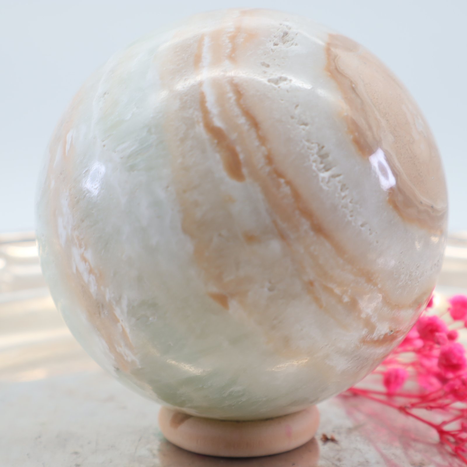 Inmitten des Ozeans, fernab von der Hektik des Alltags, entstehen unsere faszinierenden Karibischen Calcit Edelsteinkugeln, auch bekannt als Aragonit. Die Entstehung dieses außergewöhnlichen Edelsteins ist ein wahres Wunder der Natur. Über Millionen von Jahren hinweg wird dieser Edelstein durch Ablagerungen von Kalkschalen mariner Organismen gebildet, die auf dem Grund des warmen, klaren Karibischen Meeres leben. Stetig wächst und verdichtet sich die kristalline Struktur des Aragonits, bis schließlich wunderschöne, runde Edelsteinkugeln entstehen, die das Licht des Meeres in sich tragen.