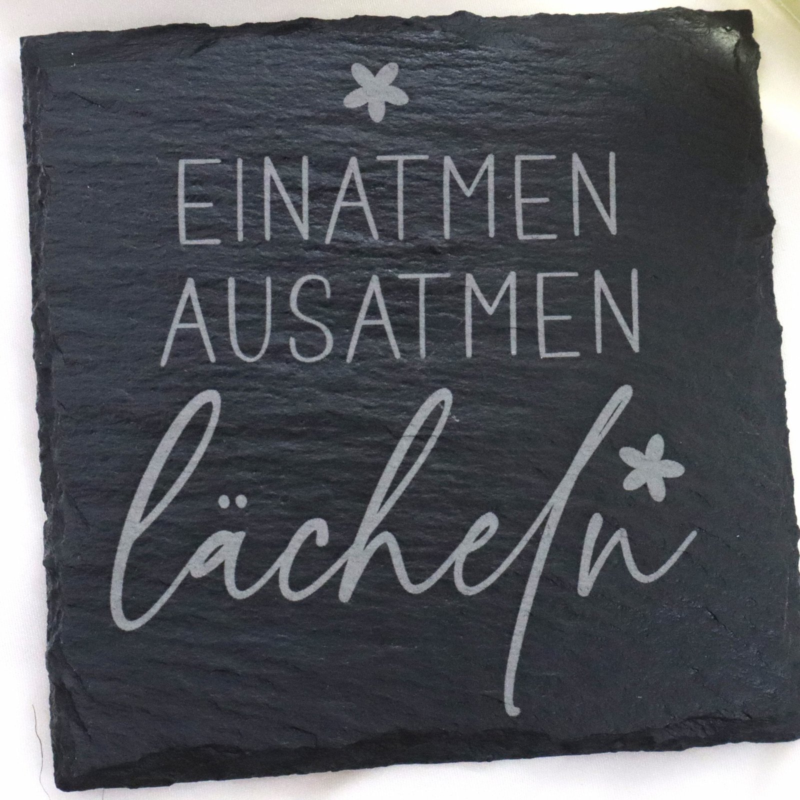 Schieferuntersetzer mit Motiv „Ein Atmen Aus Atmen Lächeln“