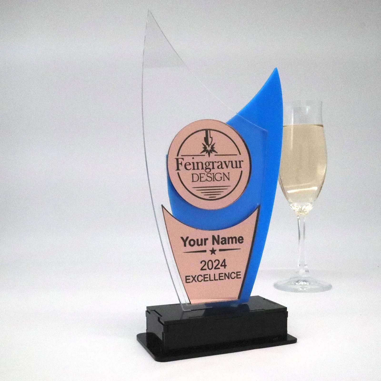 Eleganz in Harmonie – Diese Trophäe aus 5 mm Acryl, persönlicher Gravur – für eine Auszeichnung für den Ersten.