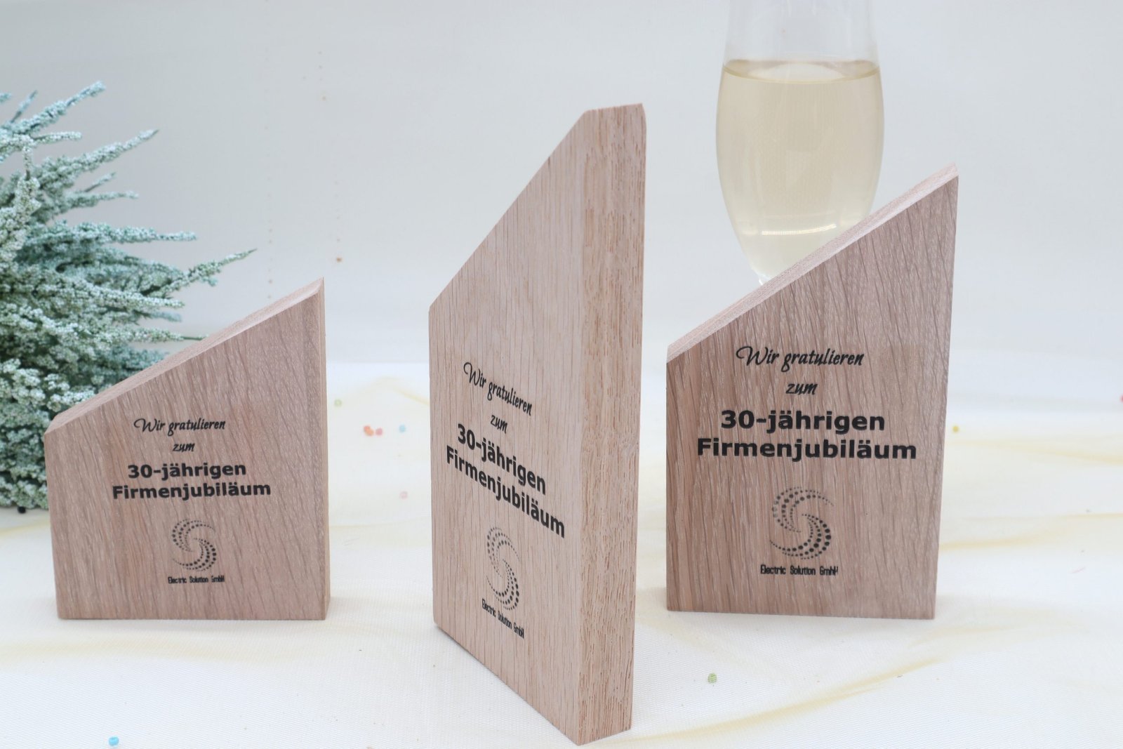 Moderne edle Sport Trophäe, eigener Text Logo, Vollholz Eiche