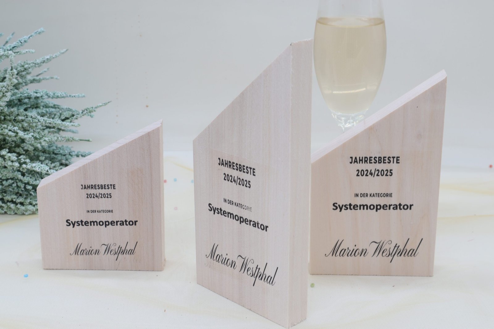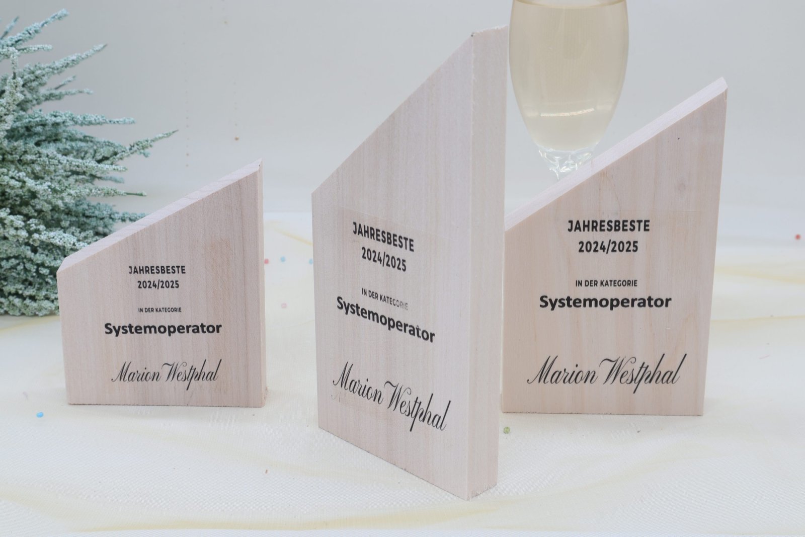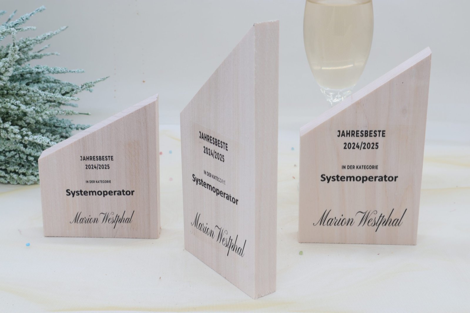 Moderne edle Sport Trophäe, eigener Text Logo, Vollholz Pappelholz