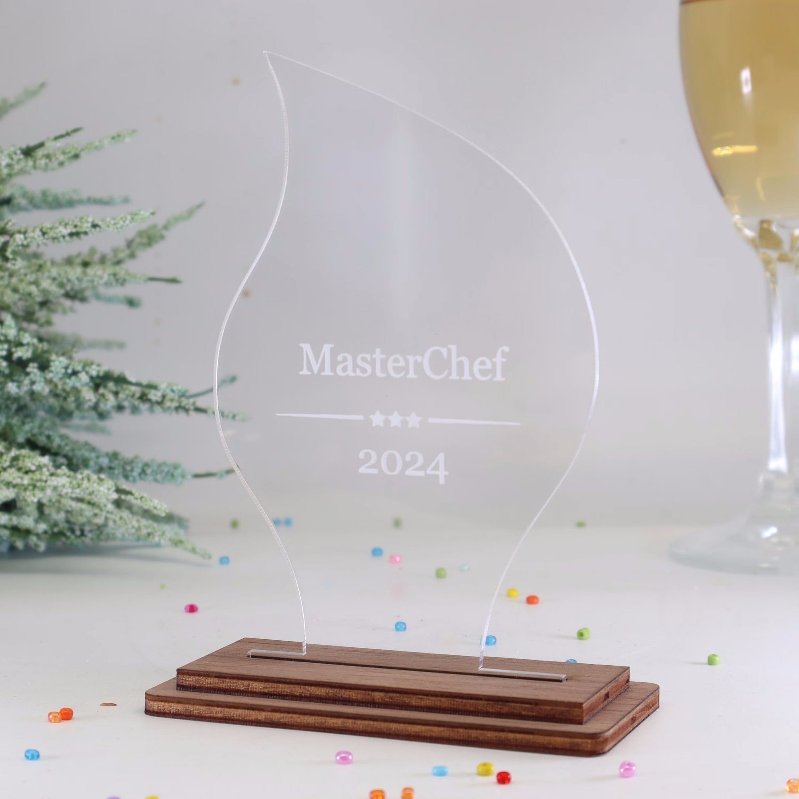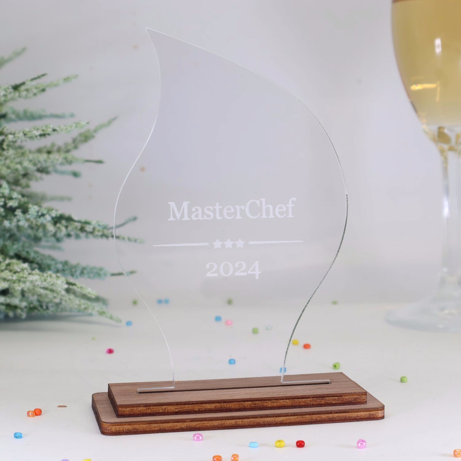 Moderne edle Sport Trophäe, eigener Text Logo, farbiges und klarem Acryl – Personalisierte Gravur – Pokal – Auszeichnung – Elegante Ehrungen