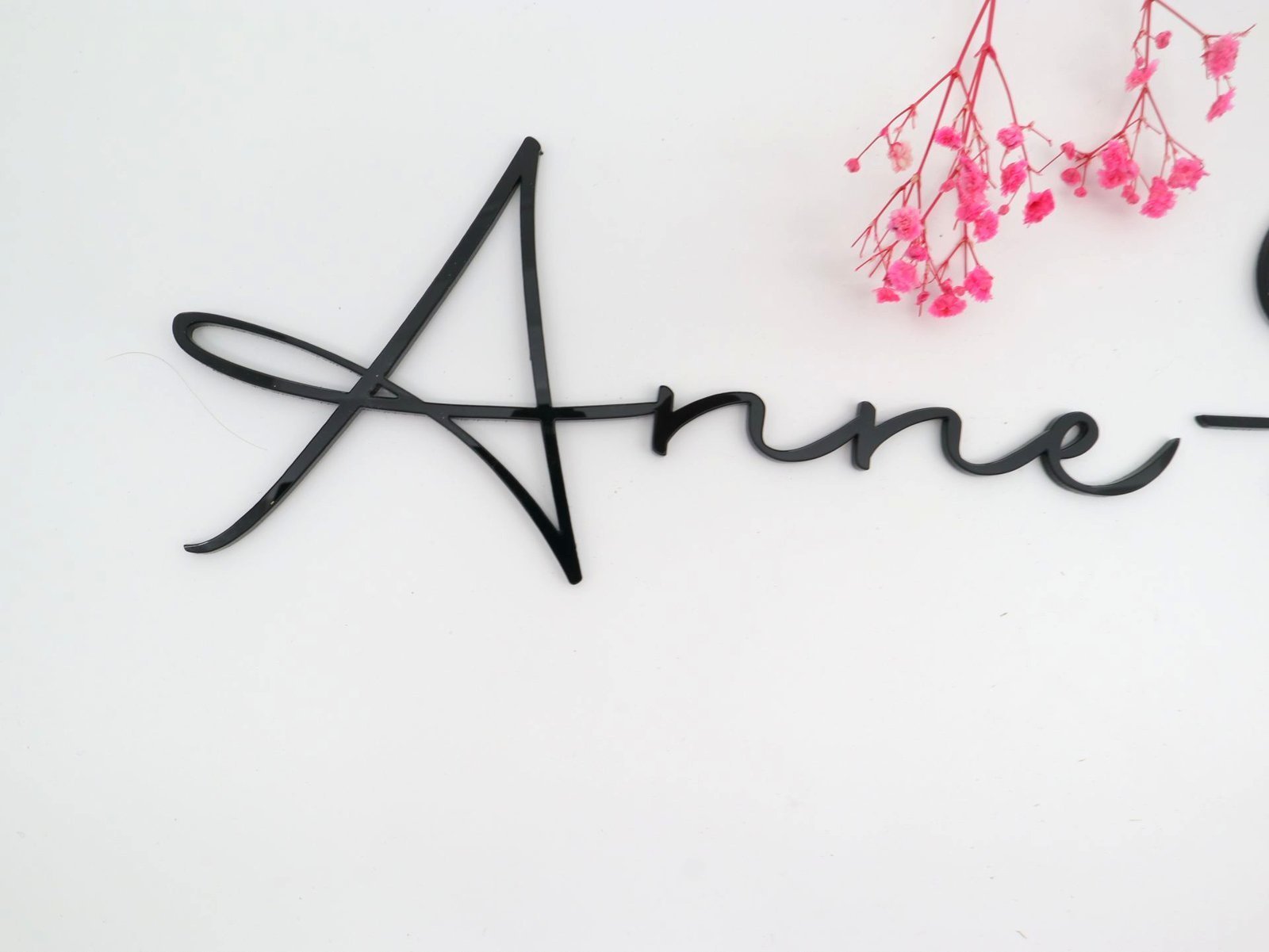 Unsere Acrylnamen werden mit größter Sorgfalt und aus hochwertigem Acrylglas geschnitten, um ein elegantes und modernes Erscheinungsbild zu gewährleisten. Jeder Buchstabe wird kunstvoll gestaltet und verleiht Ihrem Raum einen Hauch von Raffinesse und Persönlichkeit.