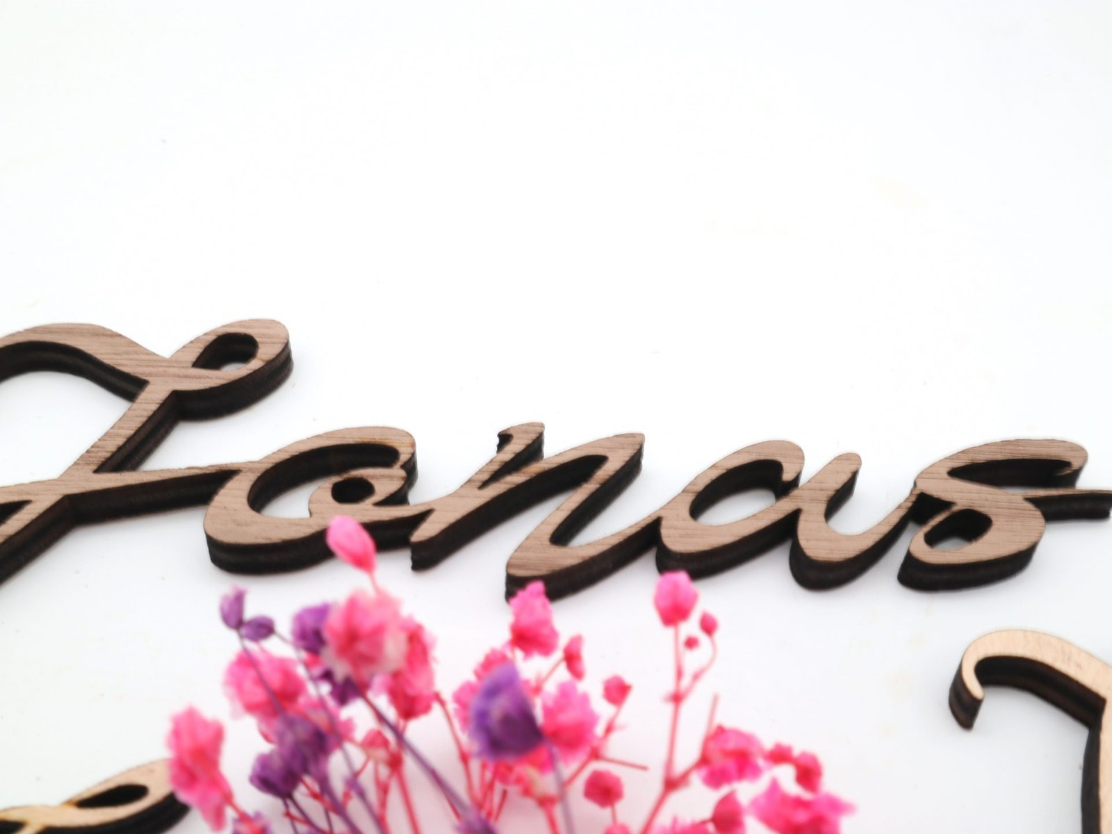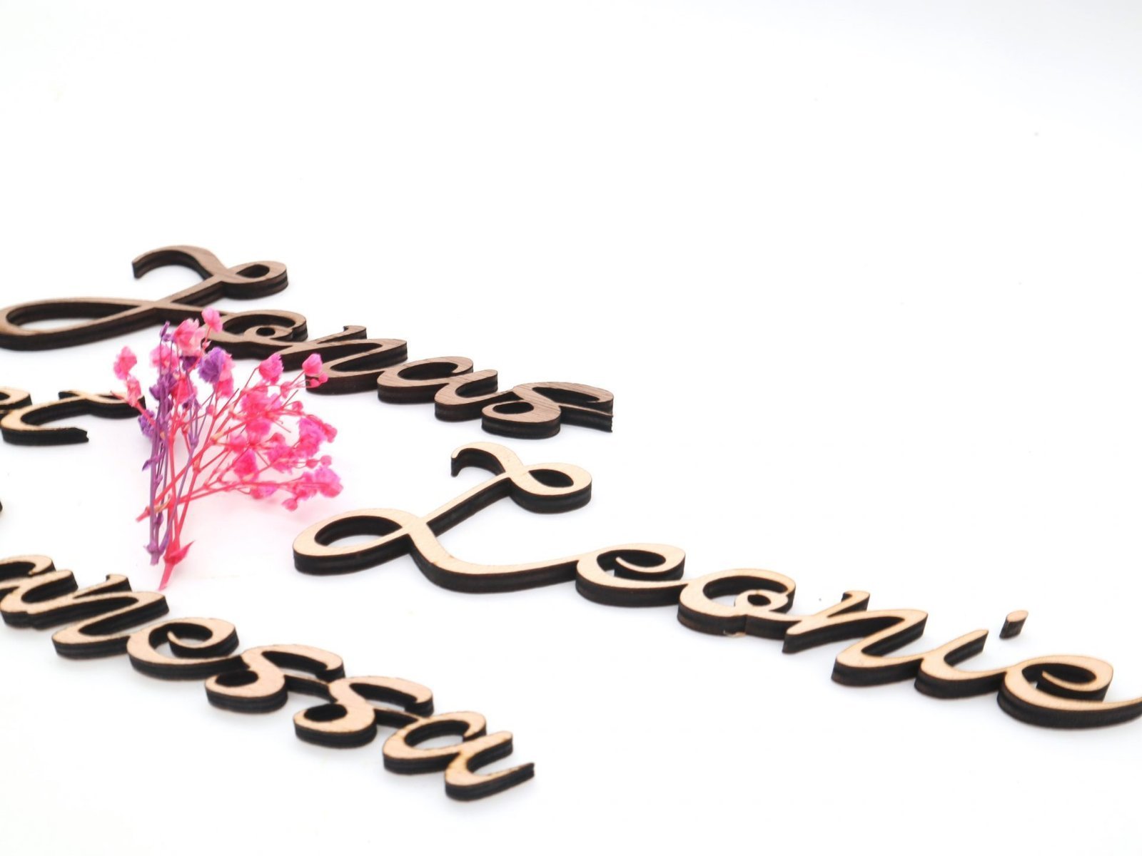 Unsere Namen aus Holz werden mit größter Sorgfalt und aus hochwertigem Sperrholz per Laser geschnitten, um ein elegantes und modernes Erscheinungsbild zu gewährleisten. Jeder Buchstabe wird kunstvoll gestaltet und verleiht Ihrem Raum einen Hauch von Raffinesse und Persönlichkeit.