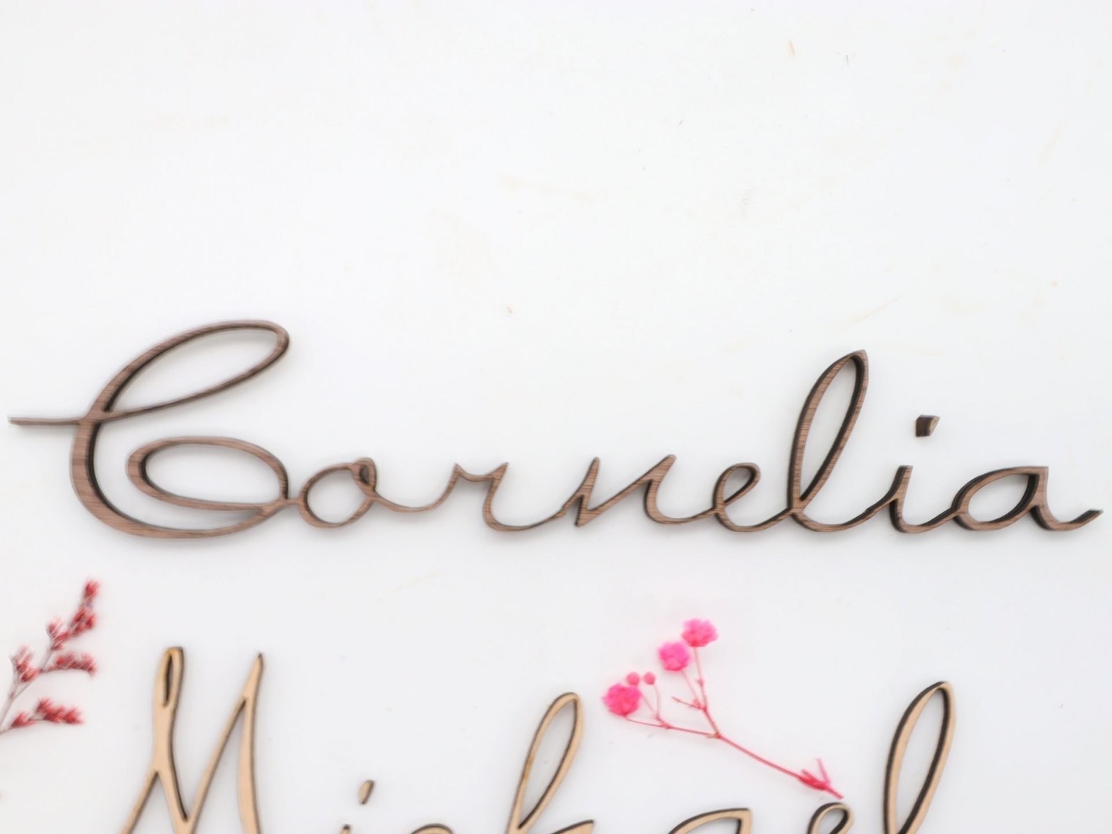 Namen als Schriftzug in Nussbaum, Ahorn, Buche personalisiertes Namenschild
