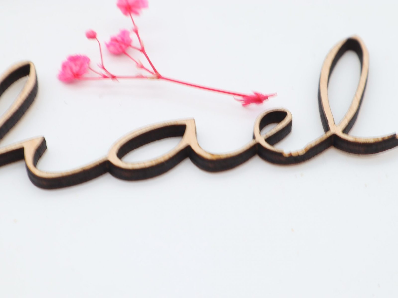 Unsere Namen aus Holz werden mit größter Sorgfalt und aus hochwertigem Sperrholz per Laser geschnitten, um ein elegantes und modernes Erscheinungsbild zu gewährleisten. Jeder Buchstabe wird kunstvoll gestaltet und verleiht Ihrem Raum einen Hauch von Raffinesse und Persönlichkeit.