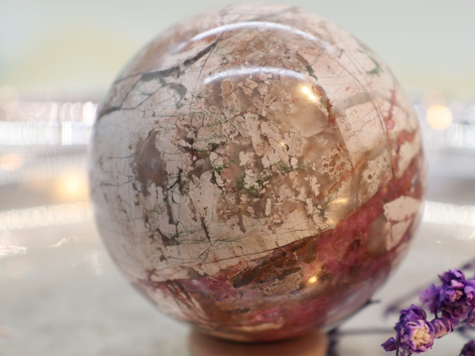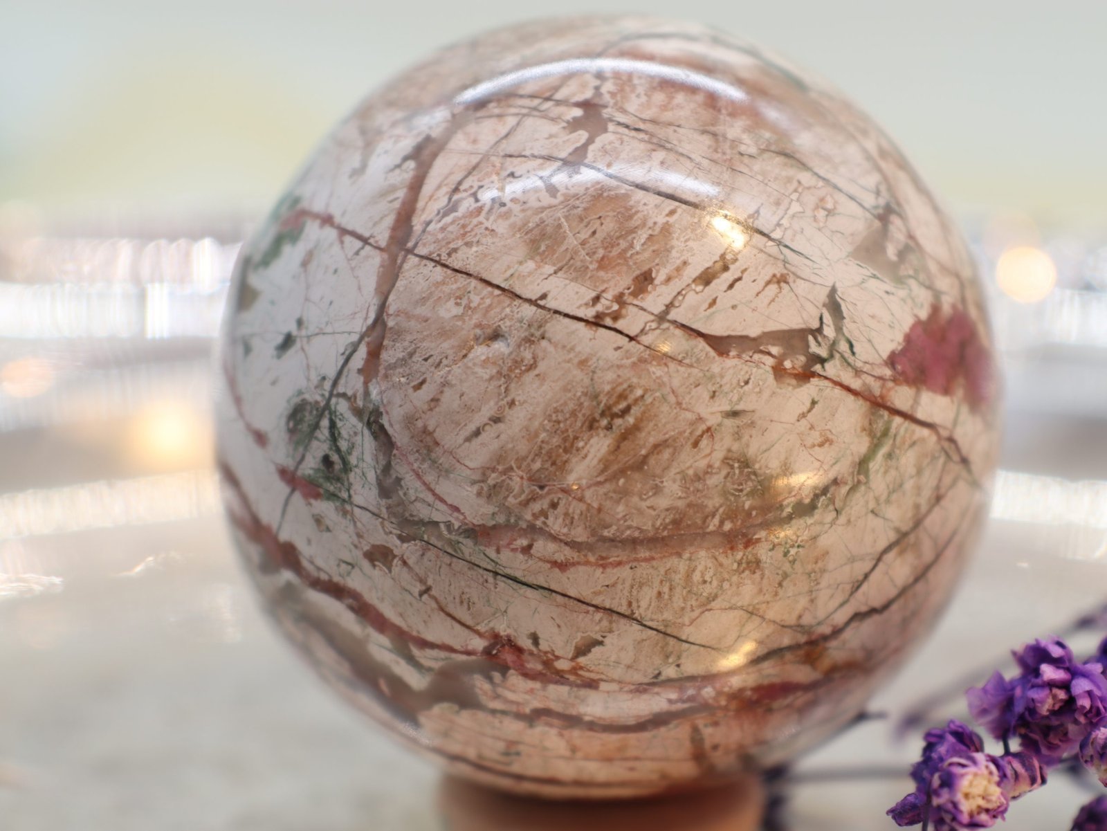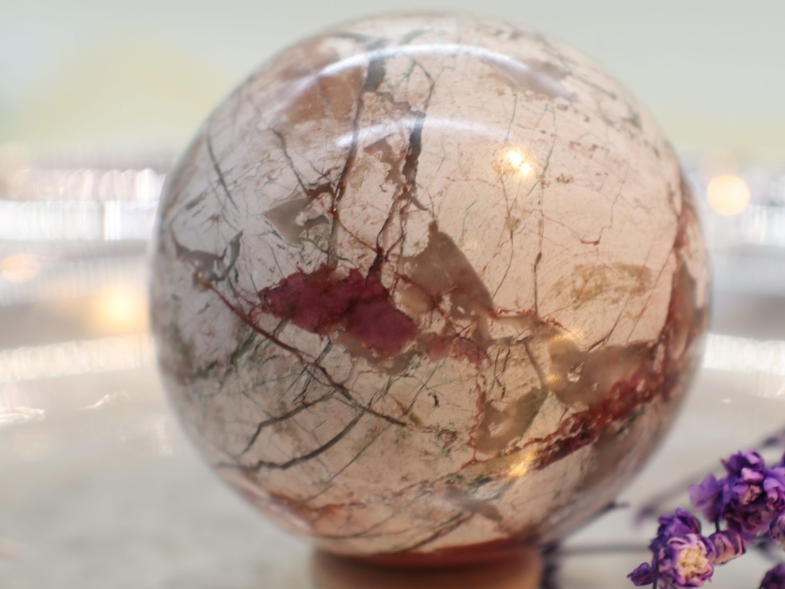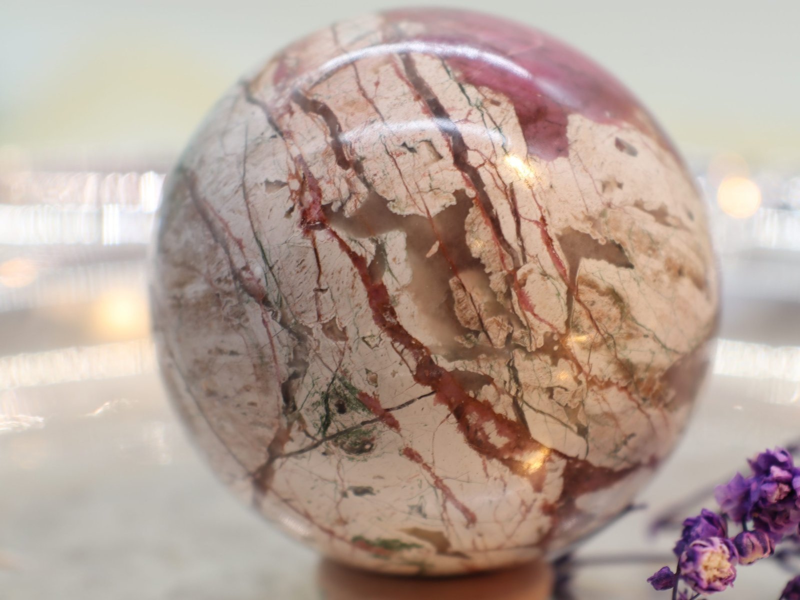 Eine seltene Cobalt-Cobalto-Calcit-Edelsteinkugel in hoher Qualität ist ein wahres Sammlerstück. Sie zeigt eine lebendige, intensive rosa bis magentafarbene Färbung, die durch die hohe Konzentration von Cobalt im Mineral entsteht. Die Oberfläche ist glatt poliert und hat einen starken Glanz, der das Licht auf eine brillante Weise reflektiert und die satten Farbtöne noch lebendiger erscheinen lässt. Innerhalb der Kugel können gelegentlich zarte weiße Adern oder kristalline Strukturen zu sehen sein, die der Kugel eine interessante Textur und Tiefe verleihen.