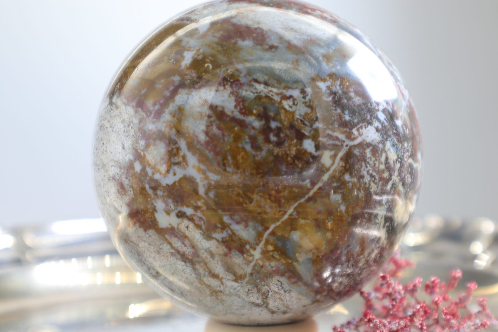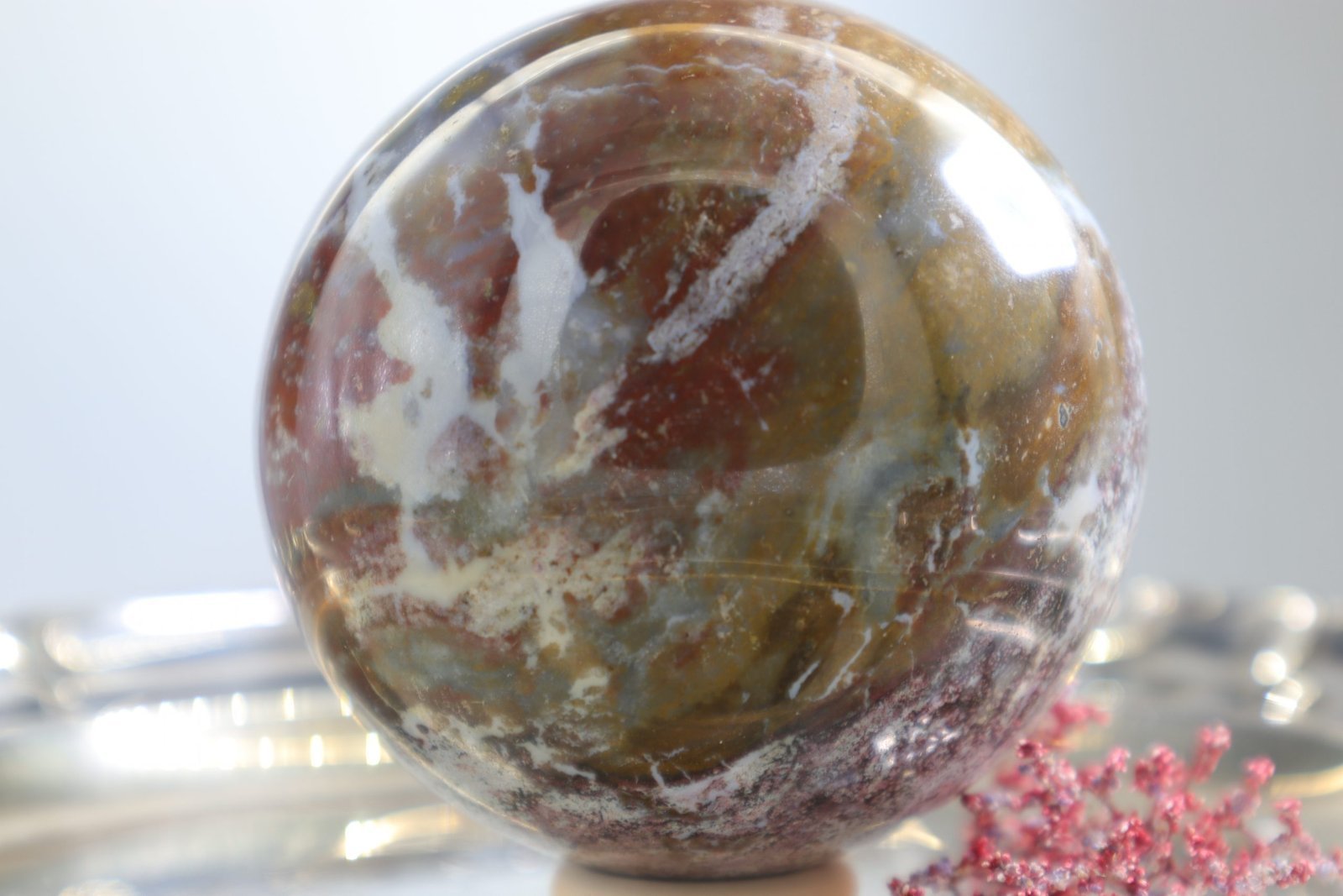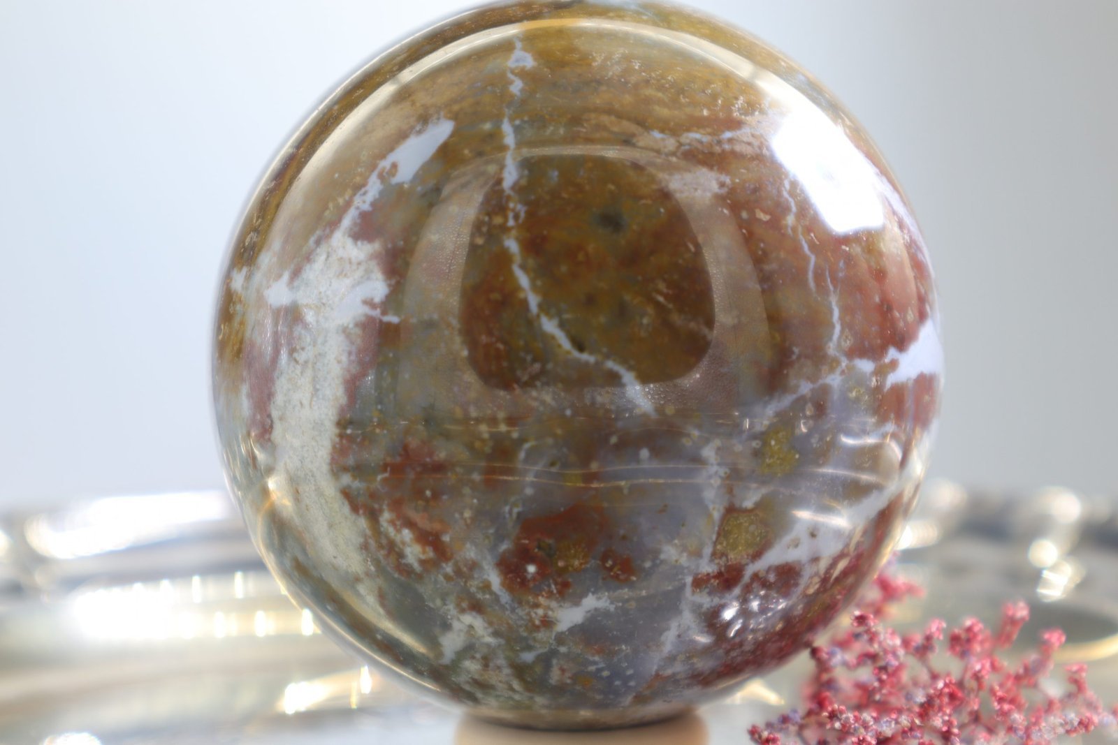 Ozean Jaspis Edelsteinkugel, Hochglänzend poliert, 82 mm