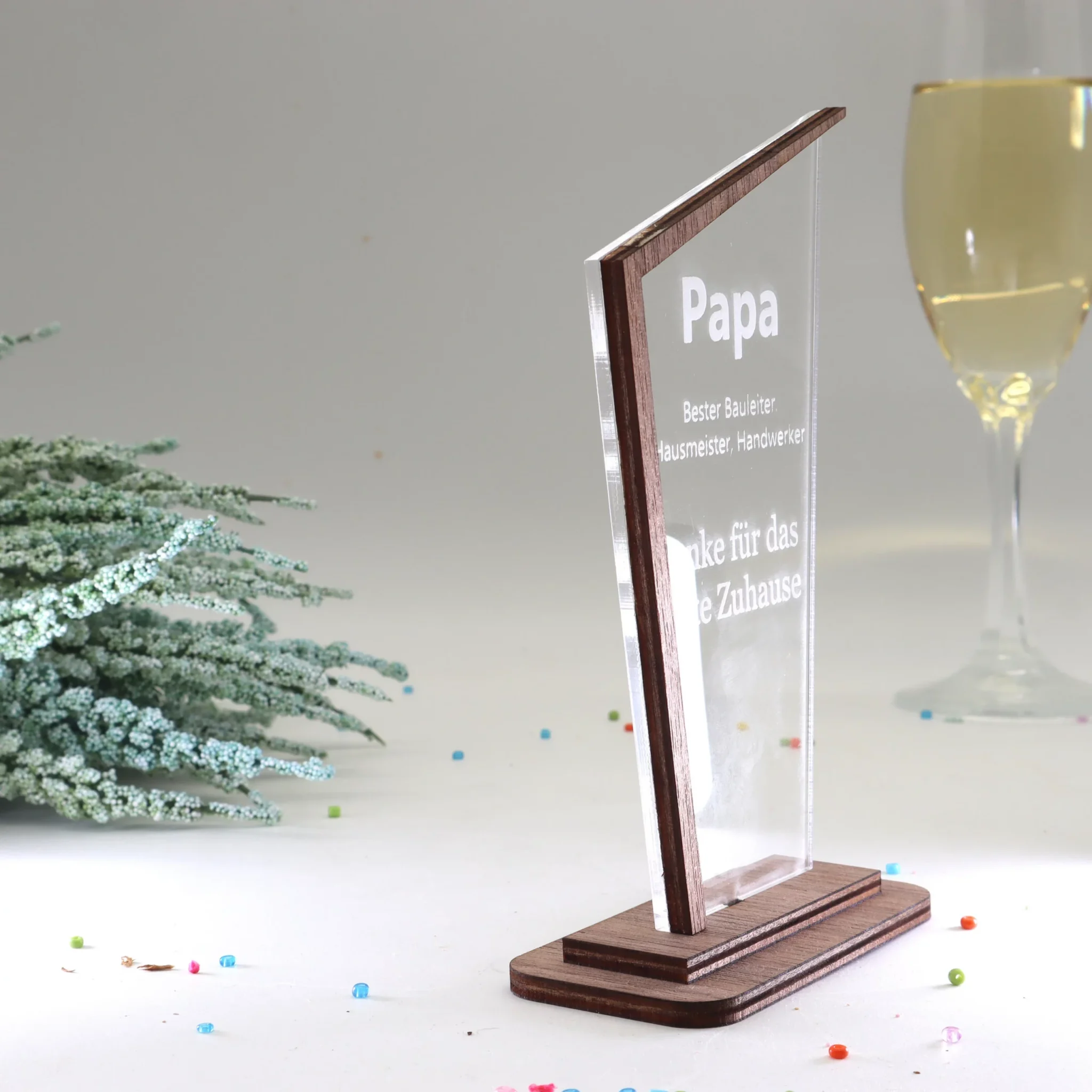 - 100 % personalisierbar – Name, Text, Logo, Datum, Widmung