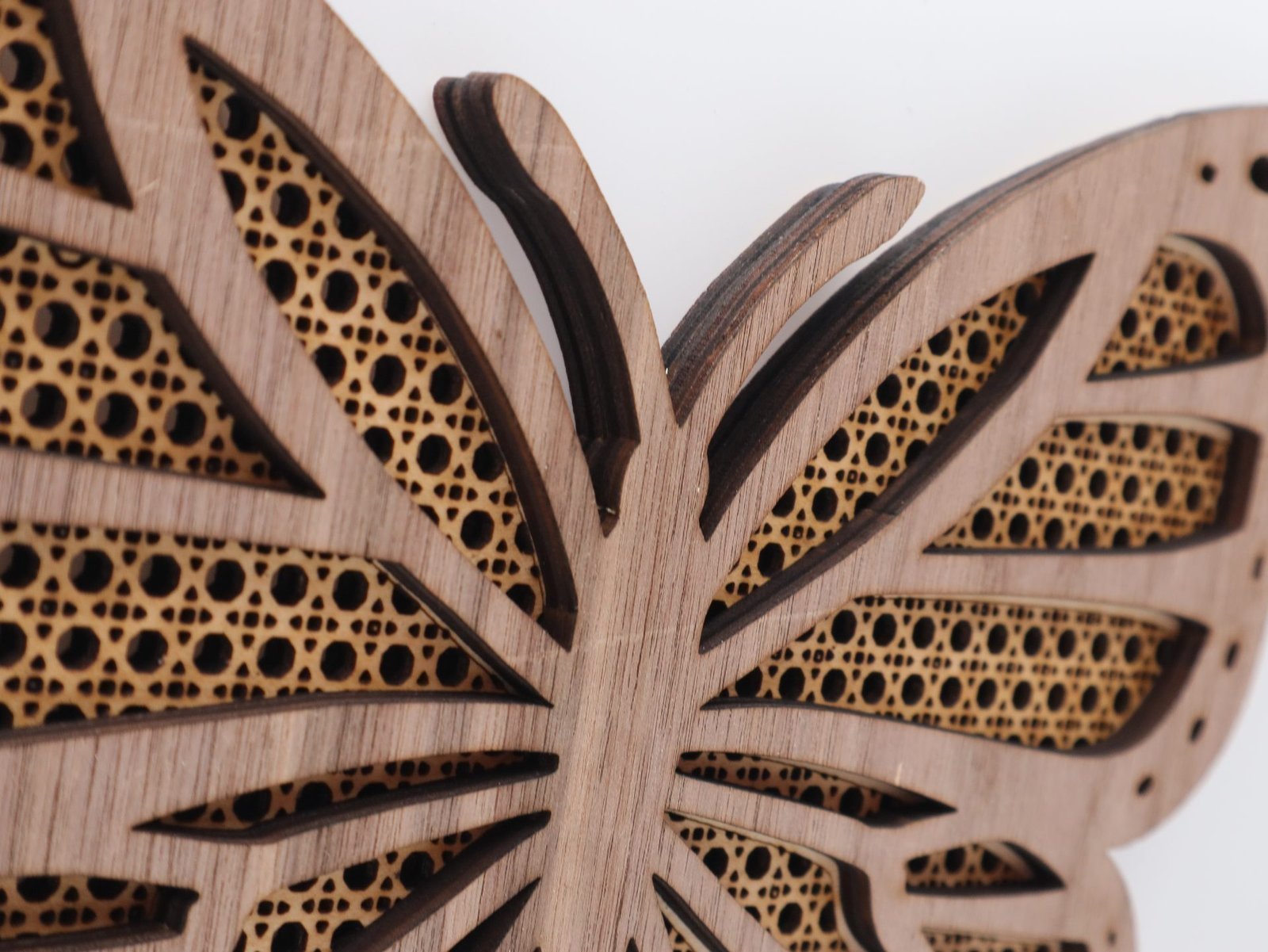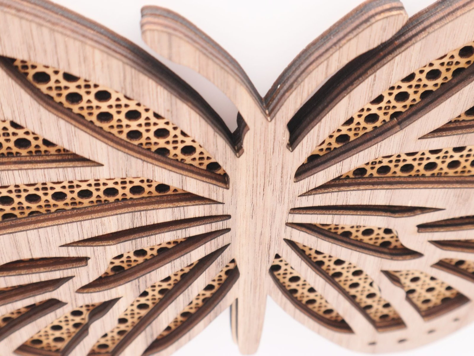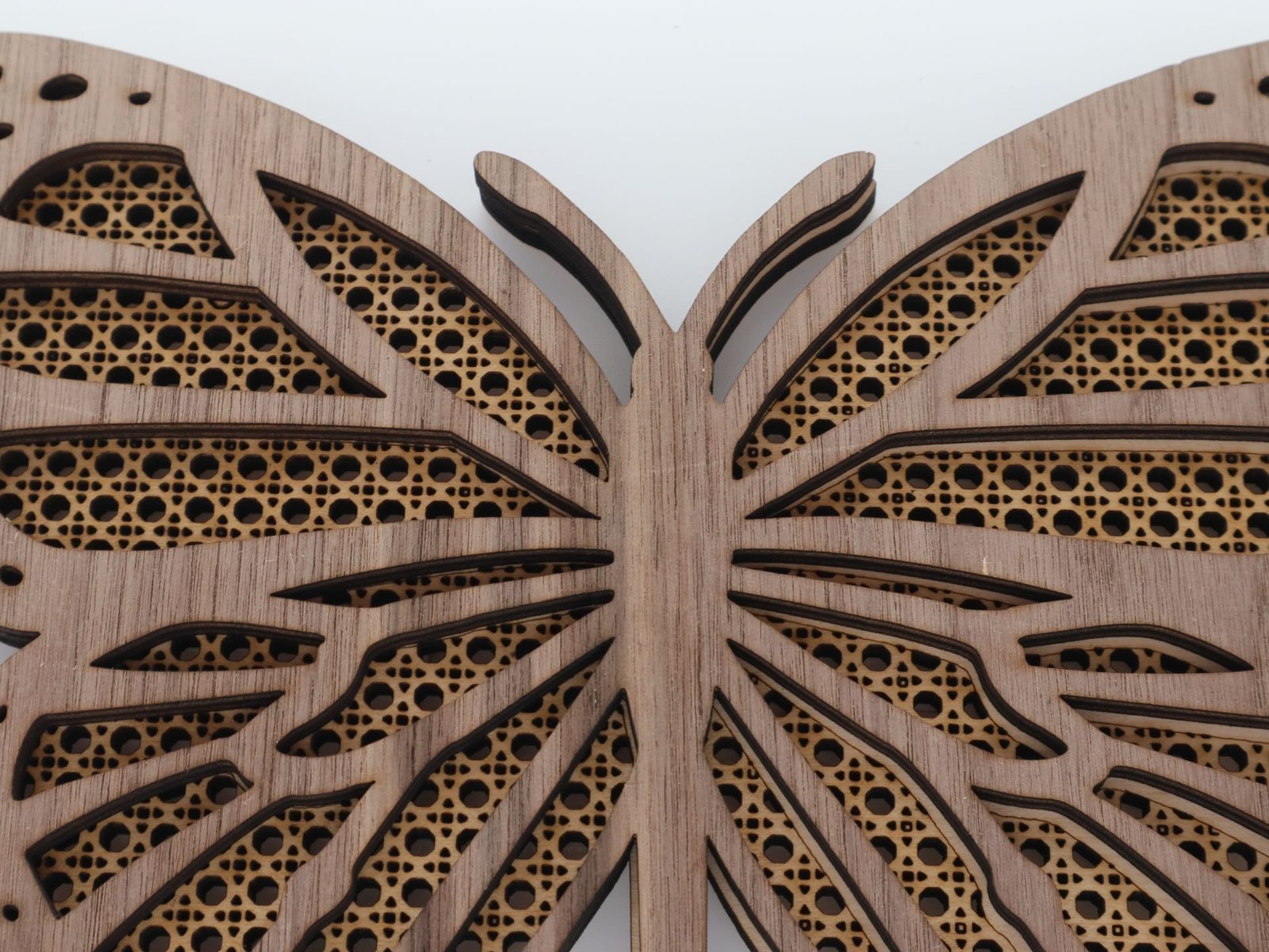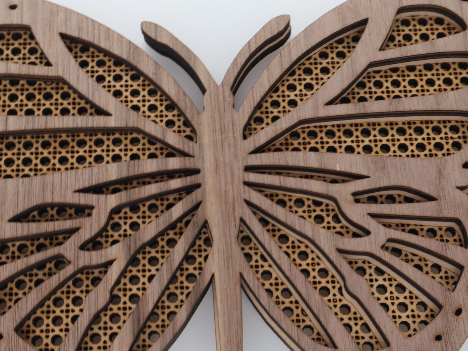 Schmetterling aus Nussbaum Holz mit Rattan Muster | Boho Schmetterling