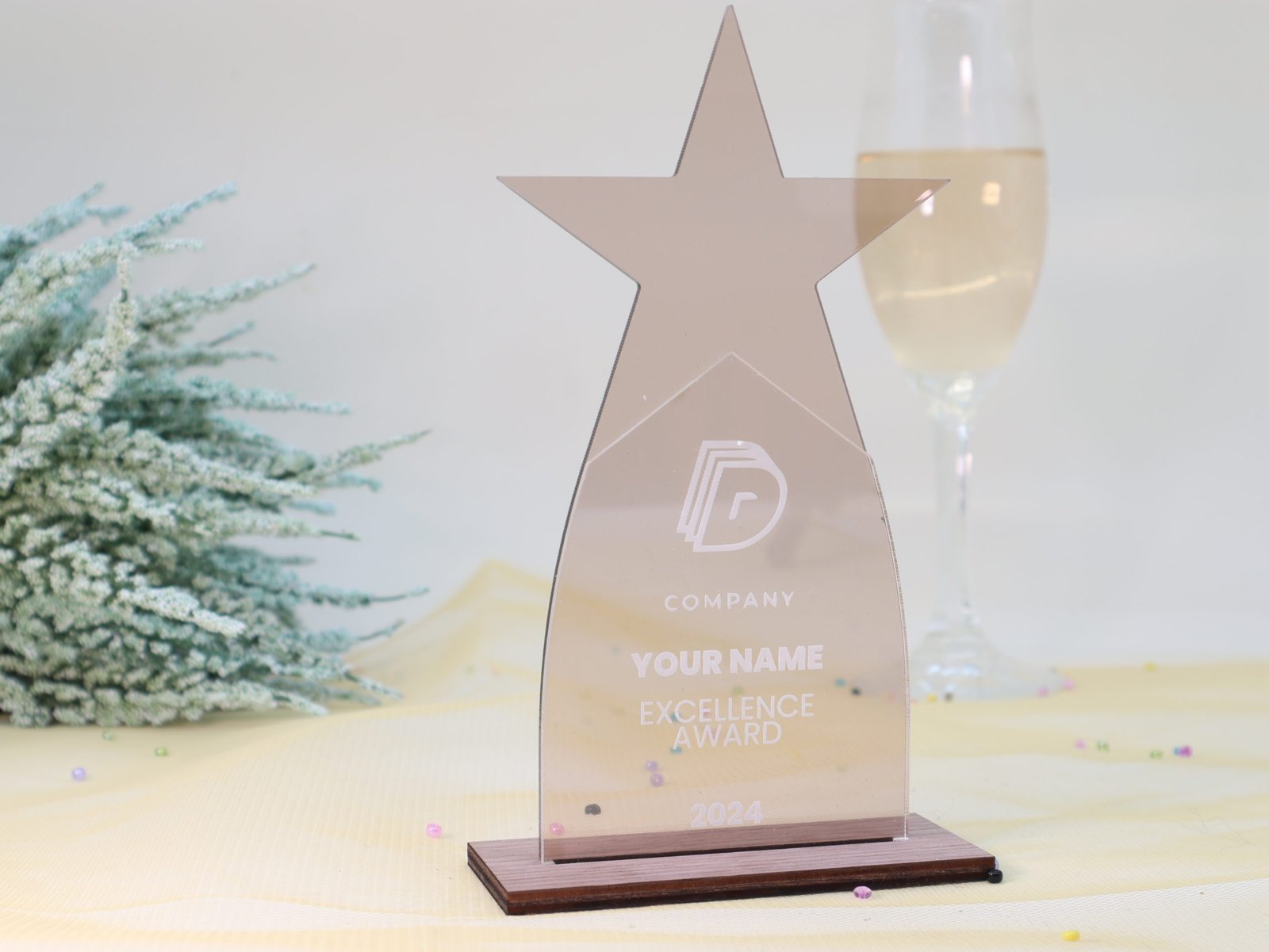 Eleganz in Harmonie – Die Sternen Trophäe aus Acrylglas und persönlicher Gravur.