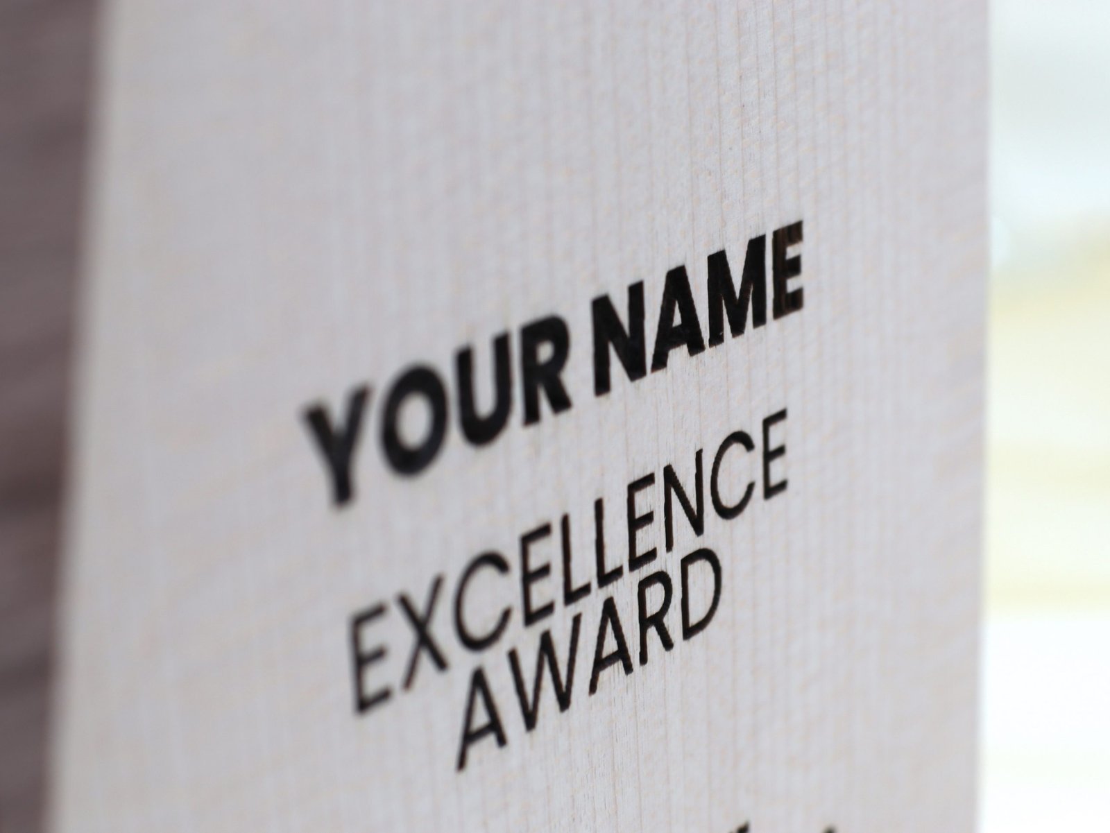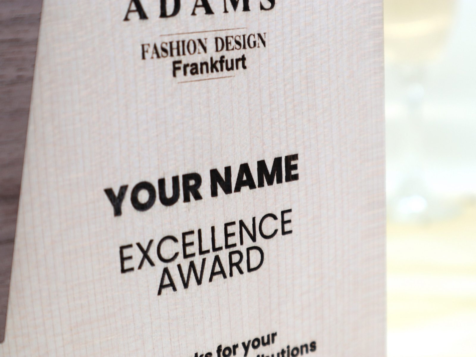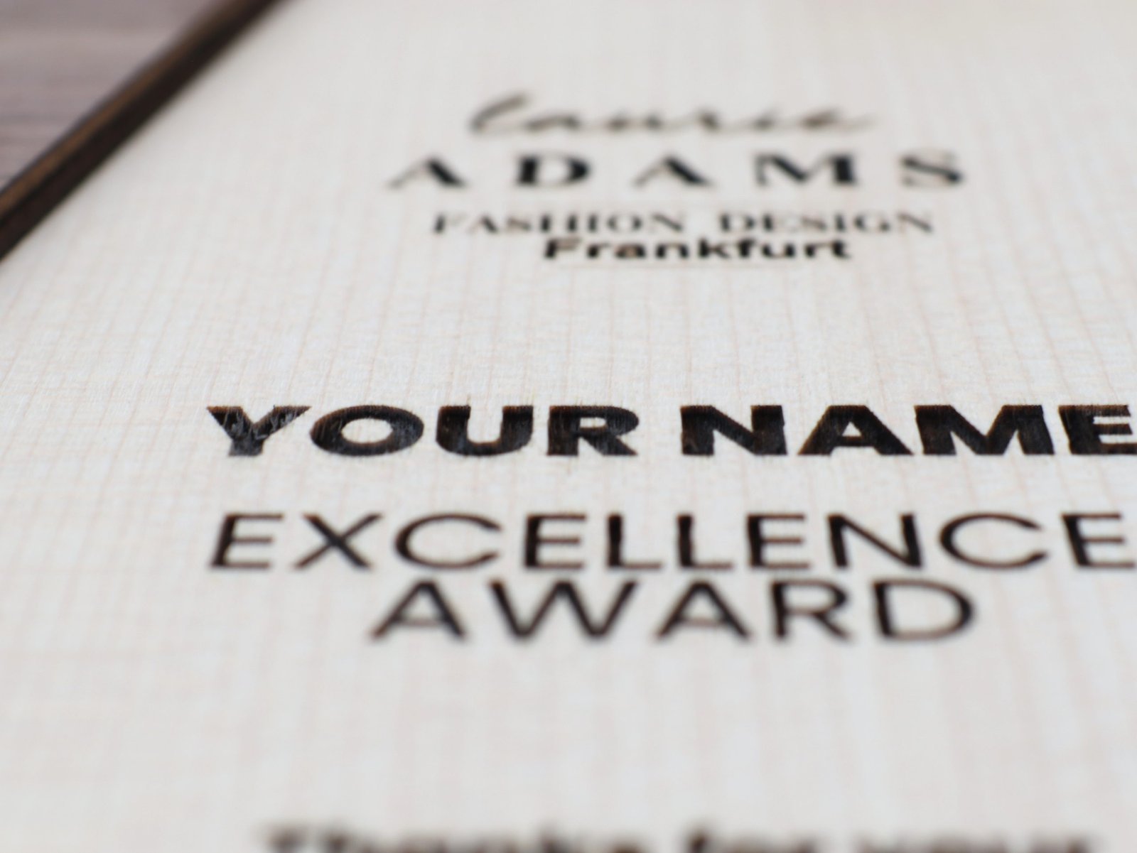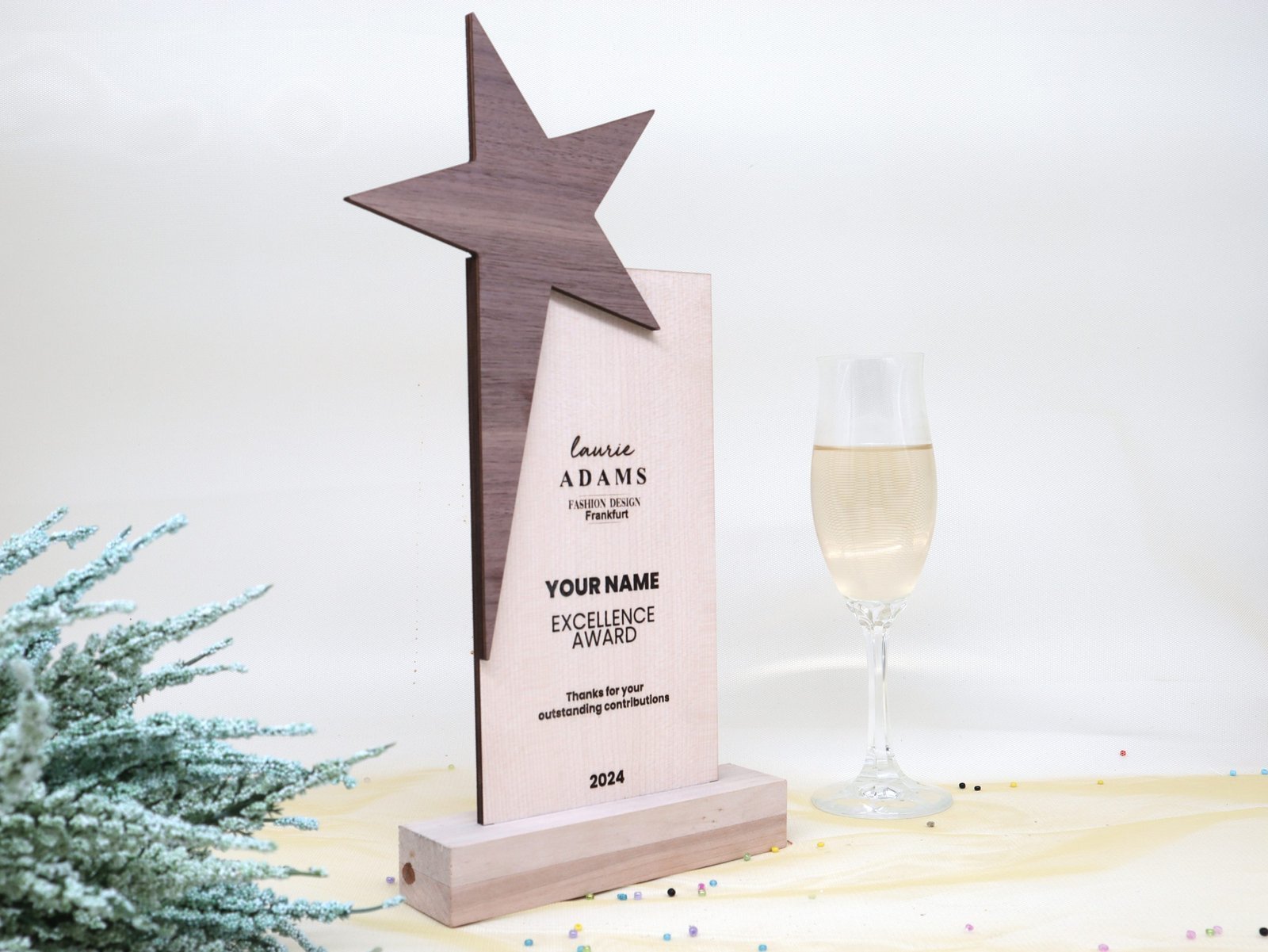 Unsere personalisierte Trophäe, gefertigt aus feinstem amerikanischem Ahorn und edlem Nussbaumholz, ist die perfekte Auszeichnung für verdiente Mitarbeiter, herausragende Chefs oder ein ganzes Unternehmen. Jede Trophäe wird individuell gestaltet und mit einer Lasergravur veredelt, die beliebige Texte, Namen oder Botschaften tief und präzise in das hochwertige Holz eingraviert.