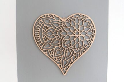 Wanddeko, Wandschild Herz aus Holz mit Blumen Ornament